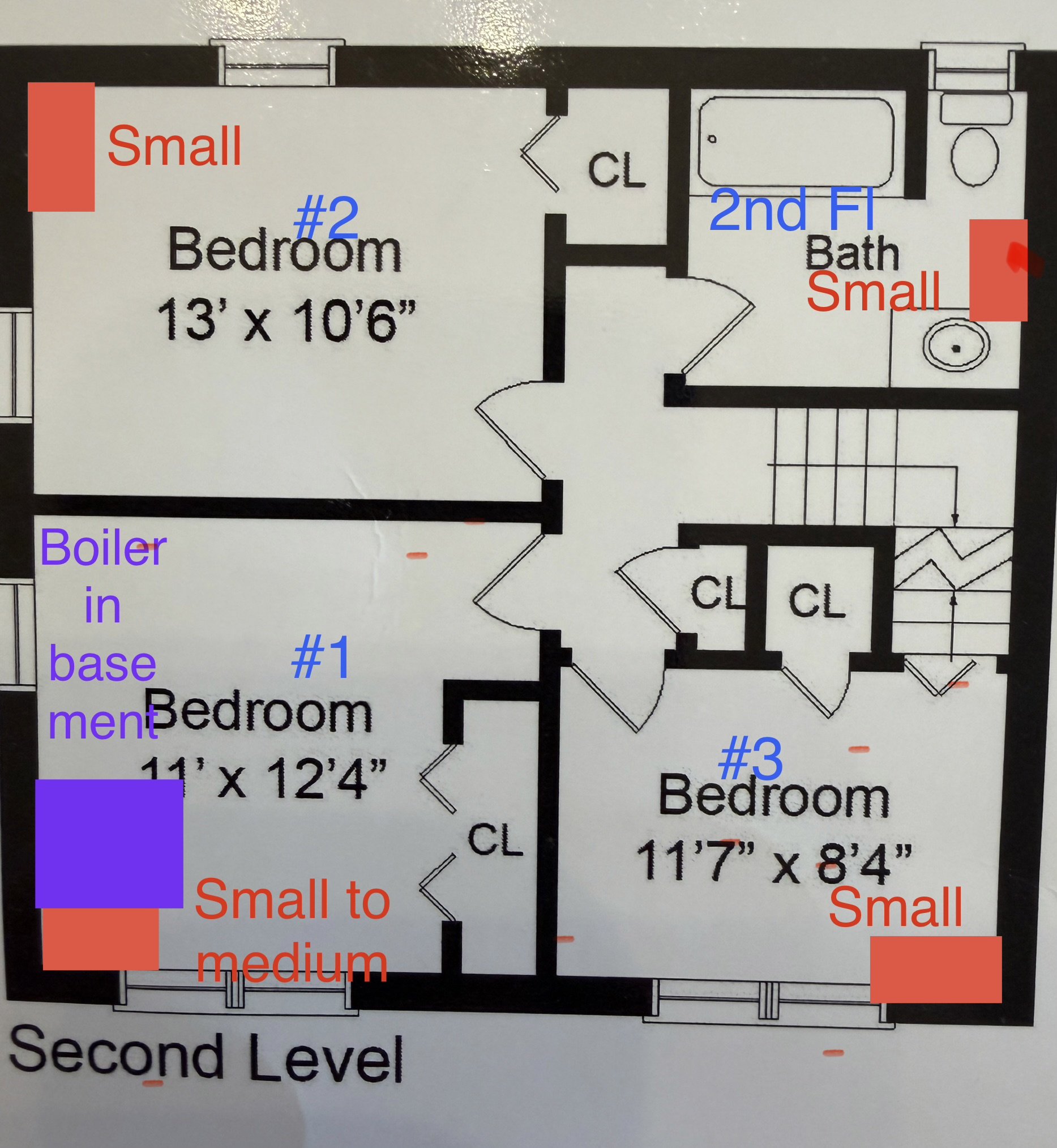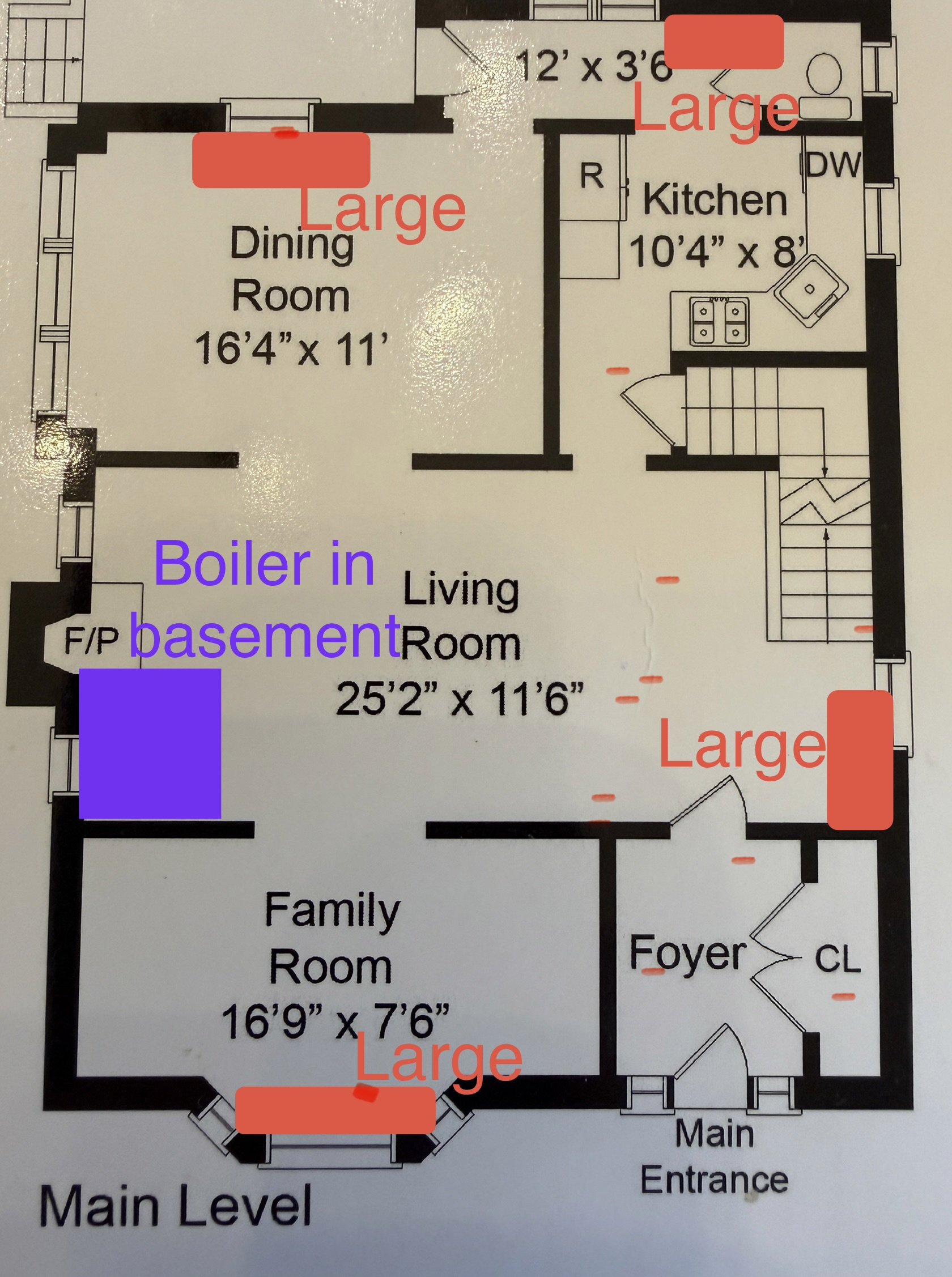I am attaching the floor plans for my house with the location and size of my radiators and where the boiler is in the basement in relative to the rooms/floors and a few other photos.