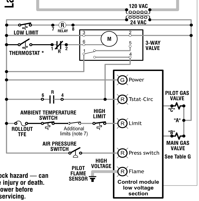 For space heat (no Low Limit call, DHW priority), the thermostat closes this activates the 3-Way valve's motor. When the 3-Way valve's motor moves to the space heat position terminals 1 & 4 of the 3-Way valve close providing a call for heat to the control module.