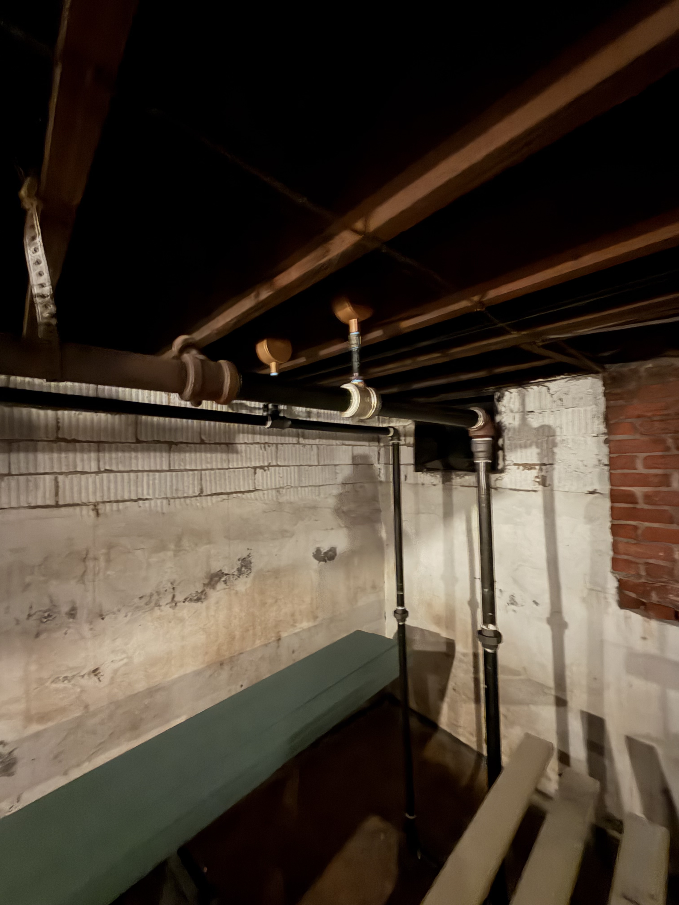 It’s just the two return lines. You may be seeing the weird way they did the equalizer or the gas line. Can i swap out the 90 at the bottom of this return line in the diagram for a T and connect my 2 return lines that way? Then put the vents on 6-10 inch stub before it turns down to go into the hardford loop? The vents are close to my floor joists currently and the steam is rotting them. Is it acceptable to step the return lines down maybe a foot lower a little bit away from the boiler, so i have head room to put the vents up on a stub like it suggests? Also, is the reason i don’t need an F&T trap because the steam main circles all the way back to the boiler as a dry return instead of stopping at the last radiator?