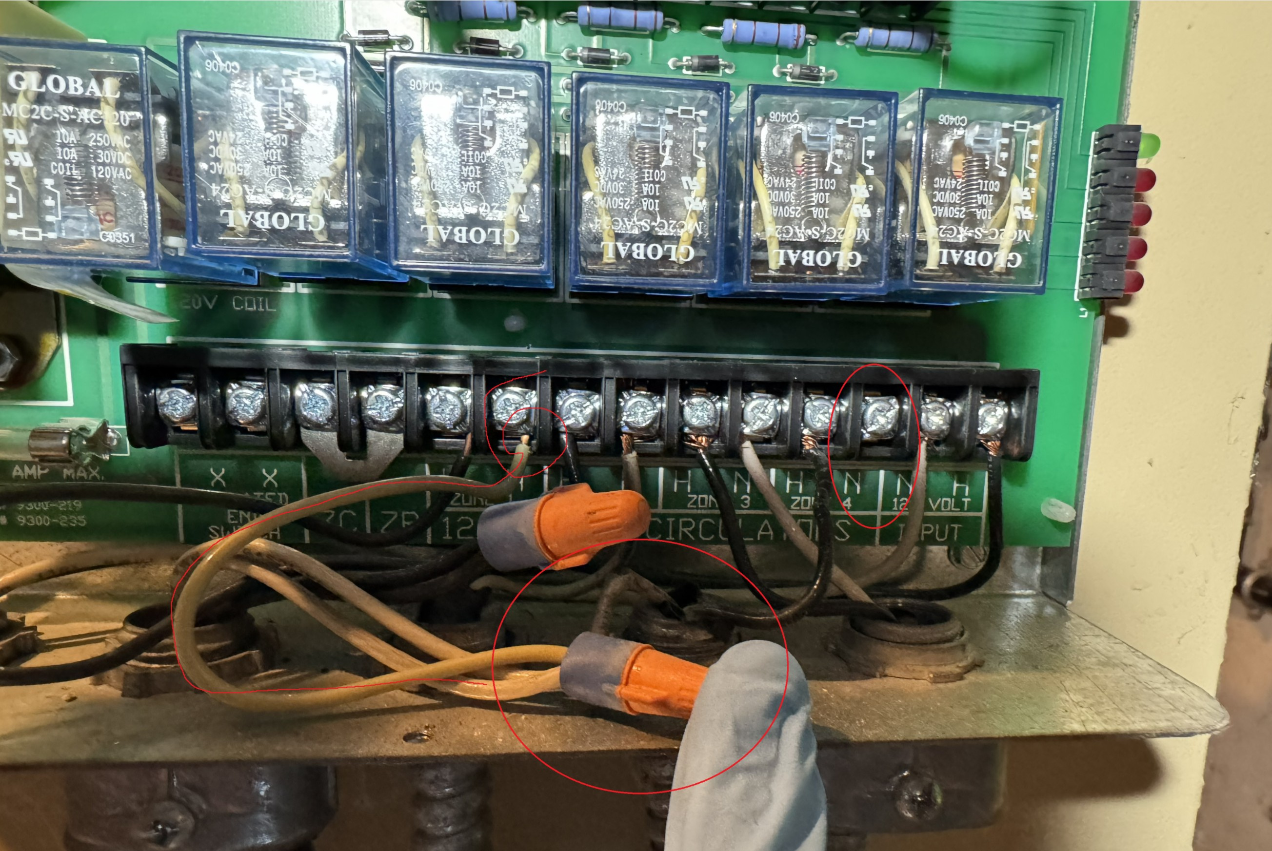 3 neutrals are combined under the Z1 neutral spot in the zone relay. 2 for separate Z1 circulators, and 1 Z4 circulator. See photo. I'm planning to re-wire it. I know the Z4 circulator works because it's to 1 radiator in our dining room.