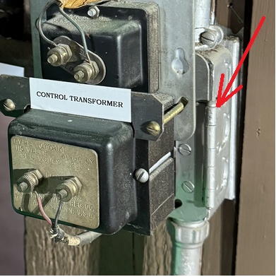 I think the BX that @mattmia2 was referring to was the BX that is going into the “Expansion Tank Relay” Box. And it looks to me that the other end of that BX it goes into a conduit that heads to a junction box and towards the knife switch disconnect / fuse box. The odd thing is that knife switch disconnect / fuse box has two circuits (apparently both are being used), when only one circuit is needed for a control transformer.