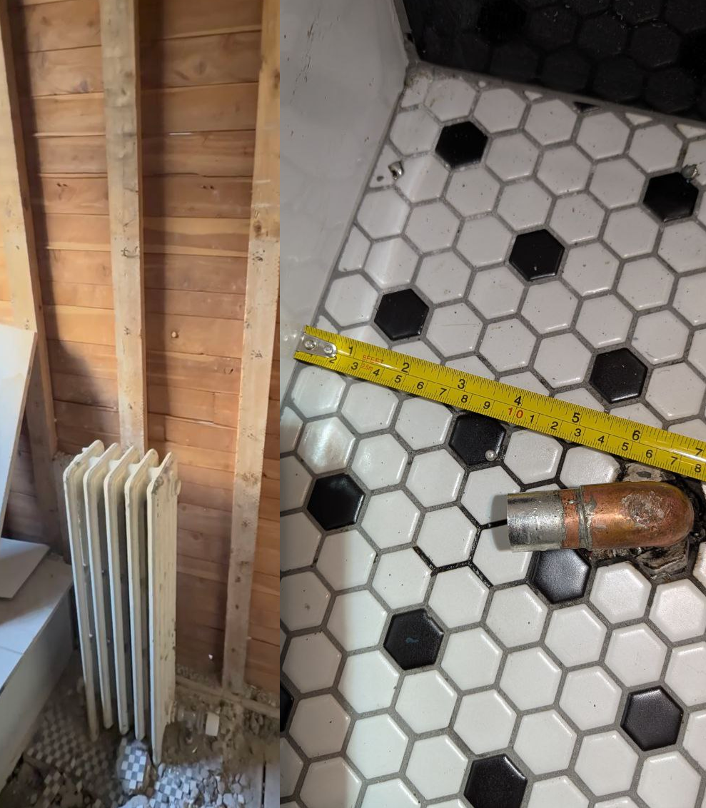 Sorry that picture is after I had him remove the radiator from his bend solution. I also should have mentioned that the radiator is different than the one that was originally in place before the demo. But yes, the new radiator was onsite and measured before the piping was installed in the floor.