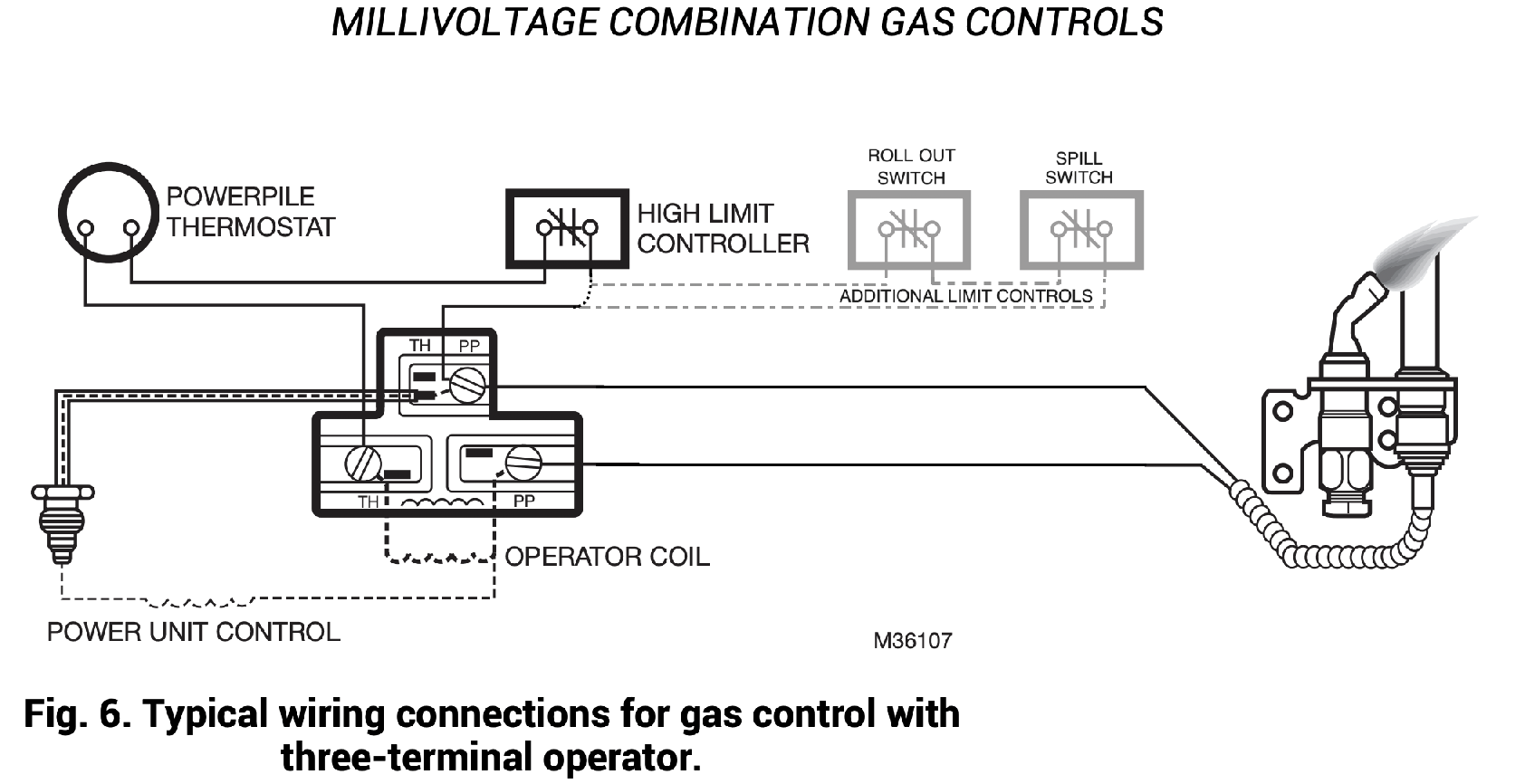 Would not surprise me if the 'control box' was nothing more than a 120 VAC to 24 VAC transformer, and then there is the gas valve and a thermocouple.