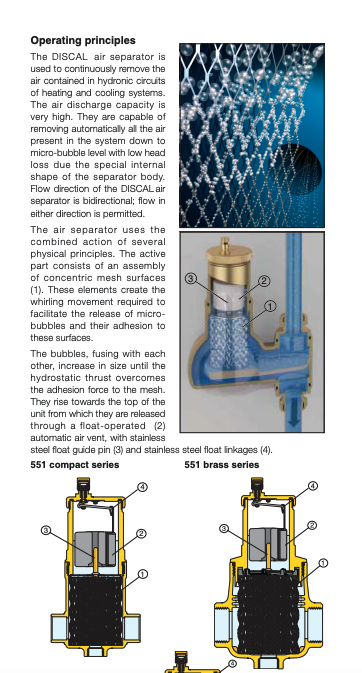 The microbubble type air separators all have a media inside that quickly grabs those bubbles.