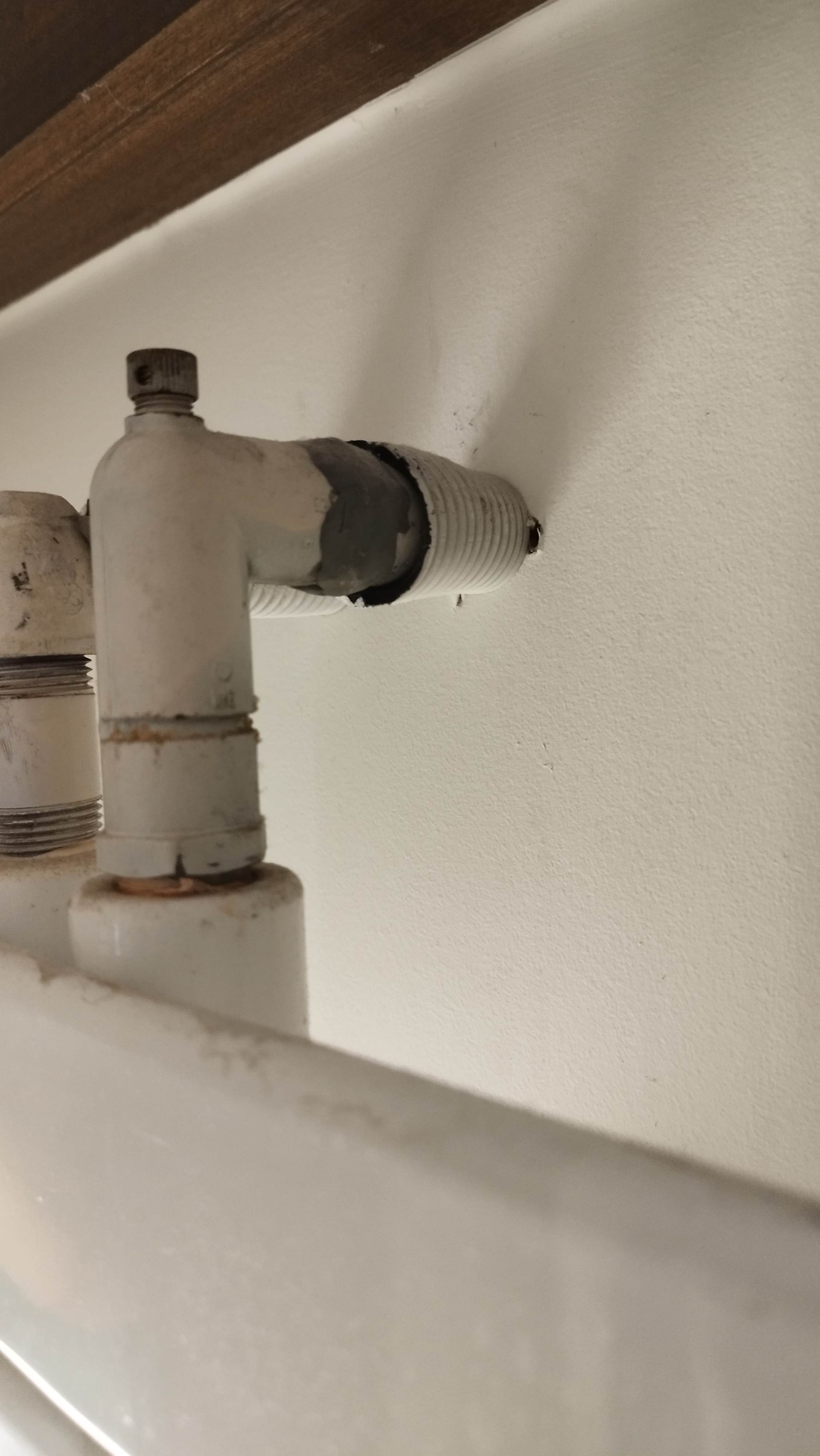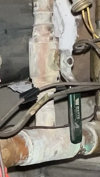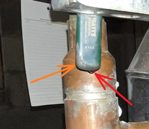 @109A_5 good eye, I went downstairs and I don't know what that thing that looks like a drip is in the first photo, but all seems okay there now. The stuff in the other photo does have a thin sheen of whitish corrosion, but it's not as bad looking in person as in the photo. Don't see any leak or anything there, I could probably clean it up fairly easily.