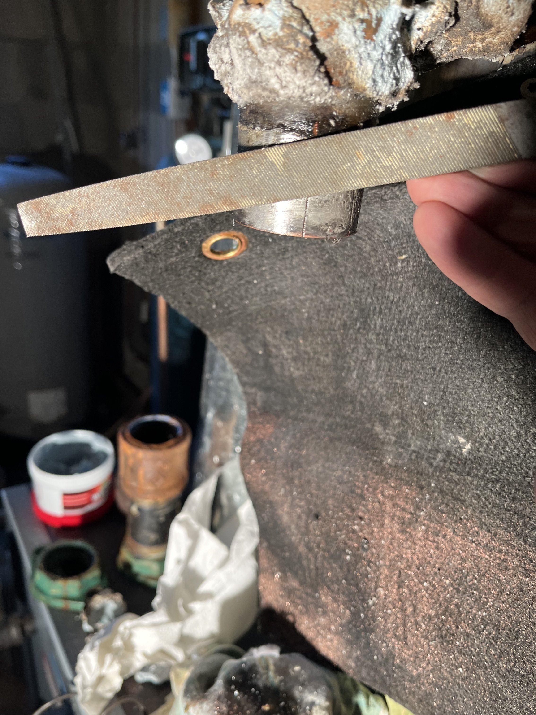 Oh, and use a wire wheel on a drill to clean the outside and a wire brush on the inside of the tee to clean it. The file or emery clothe will only work on flat surfaces.