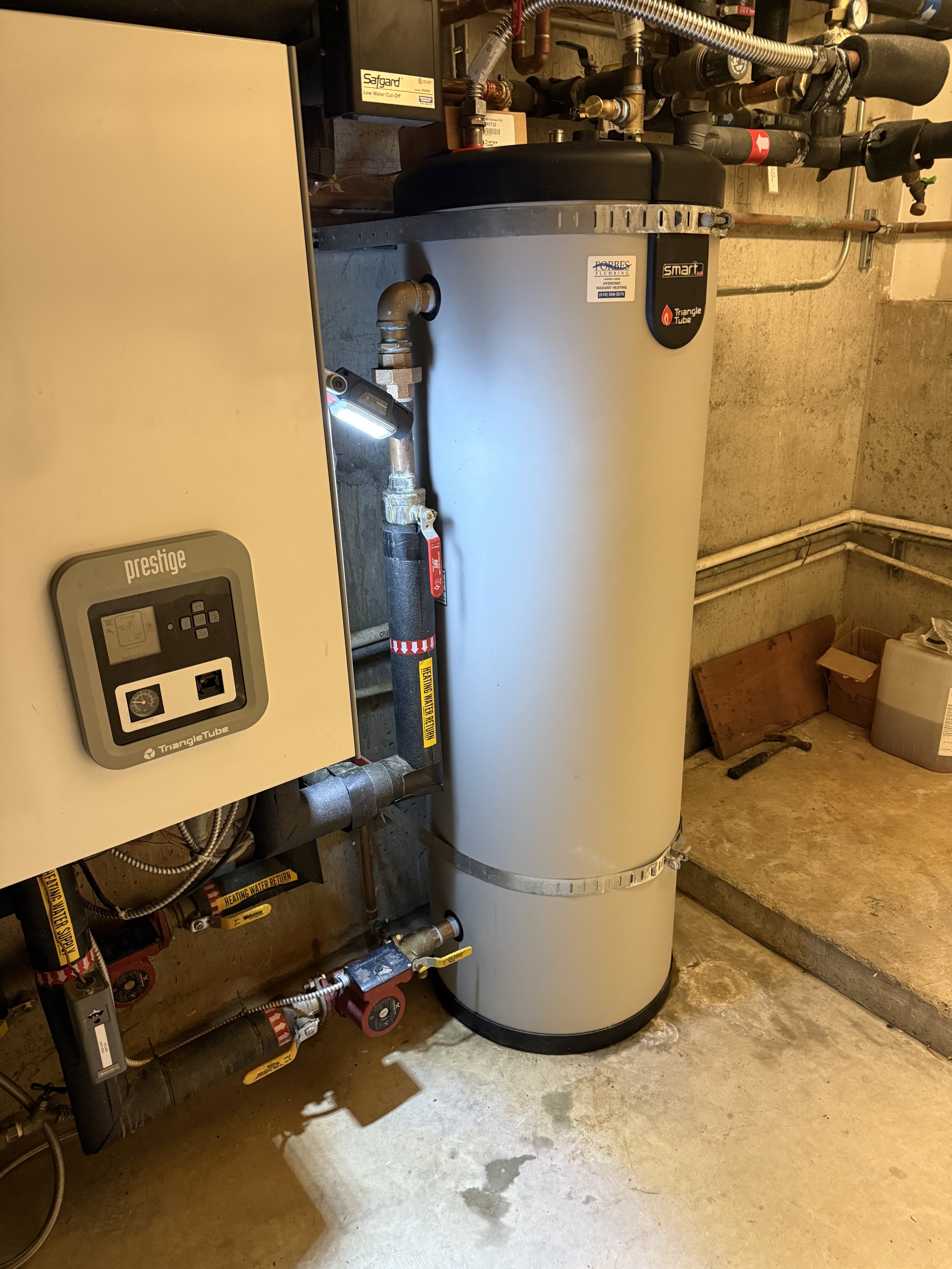 The SMART is double the recovery rate of the others I was looking at. The boiler is a TT 399K BTU unit. They have never run out of hot water. I’m very impressed with that performance. It helps that the indirect heats to 150F and the tempering valve mixes it down.