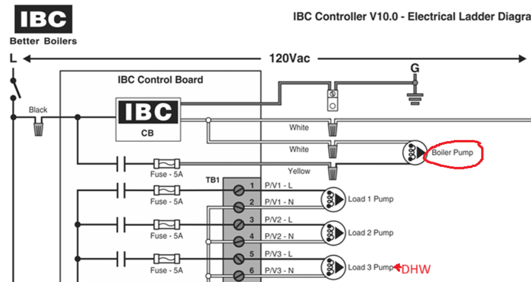 109A_5, the dedicated DHW circulator is wired here as a separate Load #3 under priority and all set up in the boiler's control on this DHW load