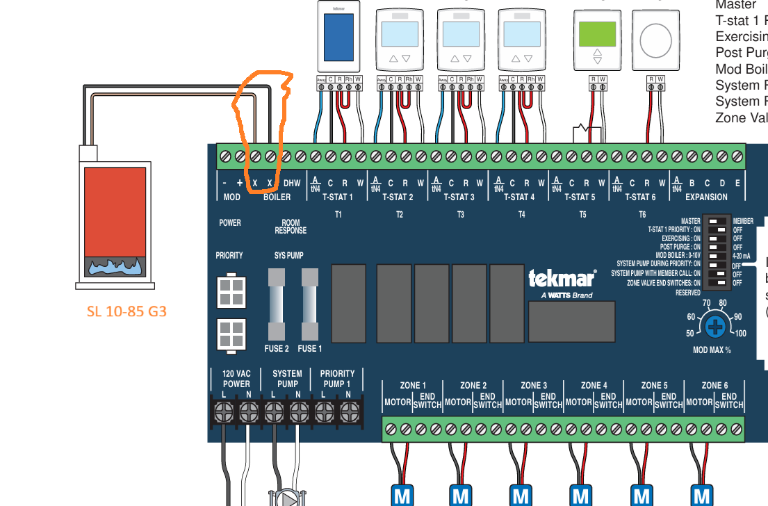 Pretty sure this IBC can't control all zvs and just am not sure and confused about what to do with the isolated end swith XX on the Tekmar. Do I leave it connected to the boiler (before with thermostats as the trigger) or need to disconnect (now with buffer water temp being the trigger)?
