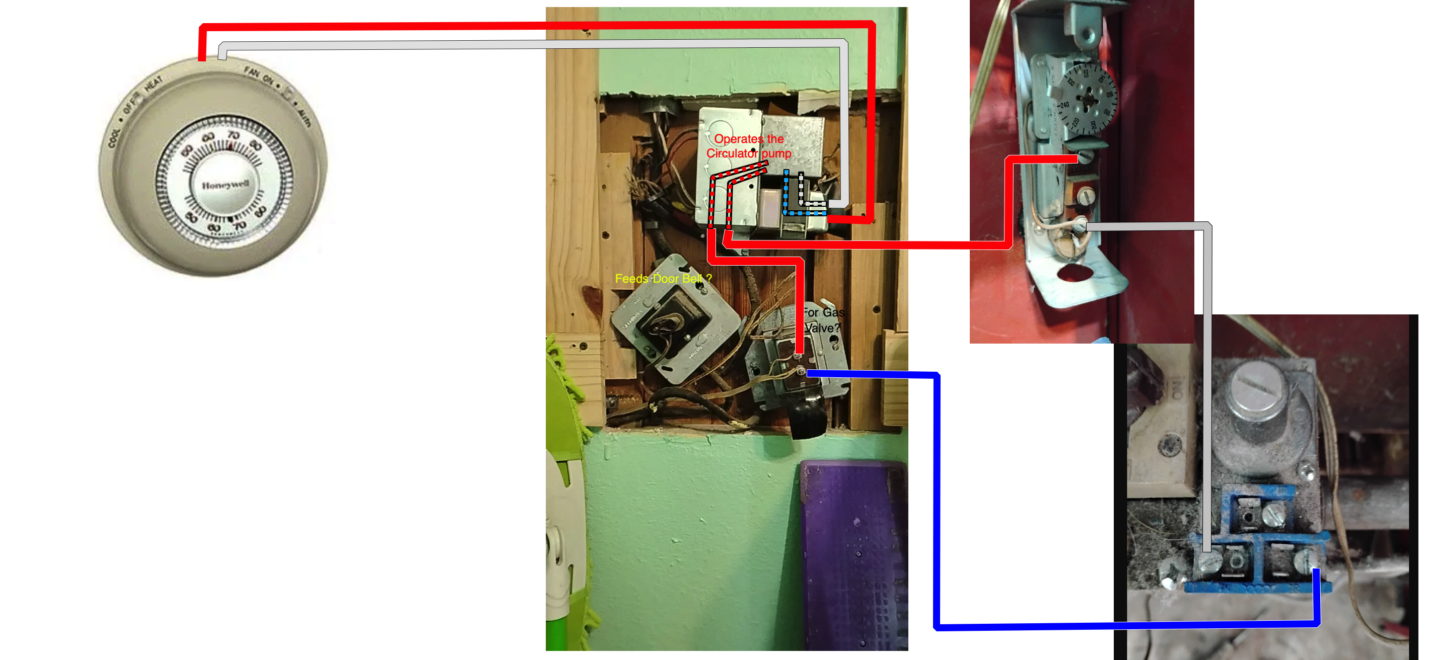 Now let's just say that you get a professional to come to make sure the 1949 boiler is operating safely and properly and that professional is not experienced on older model equipment. They might tell you that you need new equipment (and they would probably be right when it comes to operating cost) by telling you that this old stuff is unsafe. (that would be wrong information) and you didn't mind the "operating cost" gas bill which you feel is very affordable, and therefore no amount of fuel savings will justify the cost of a replacement boiler.  You will need to know how to put the wires back…