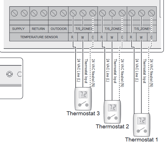 Page 43. Thermostat all three wires (Ecobee or NEST) I would probably use Zone 1.