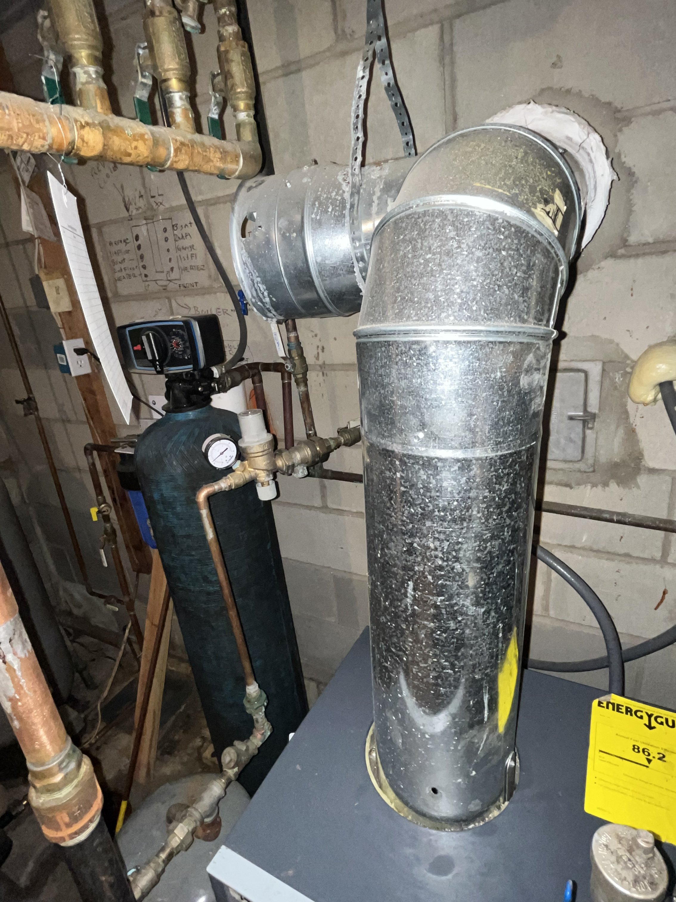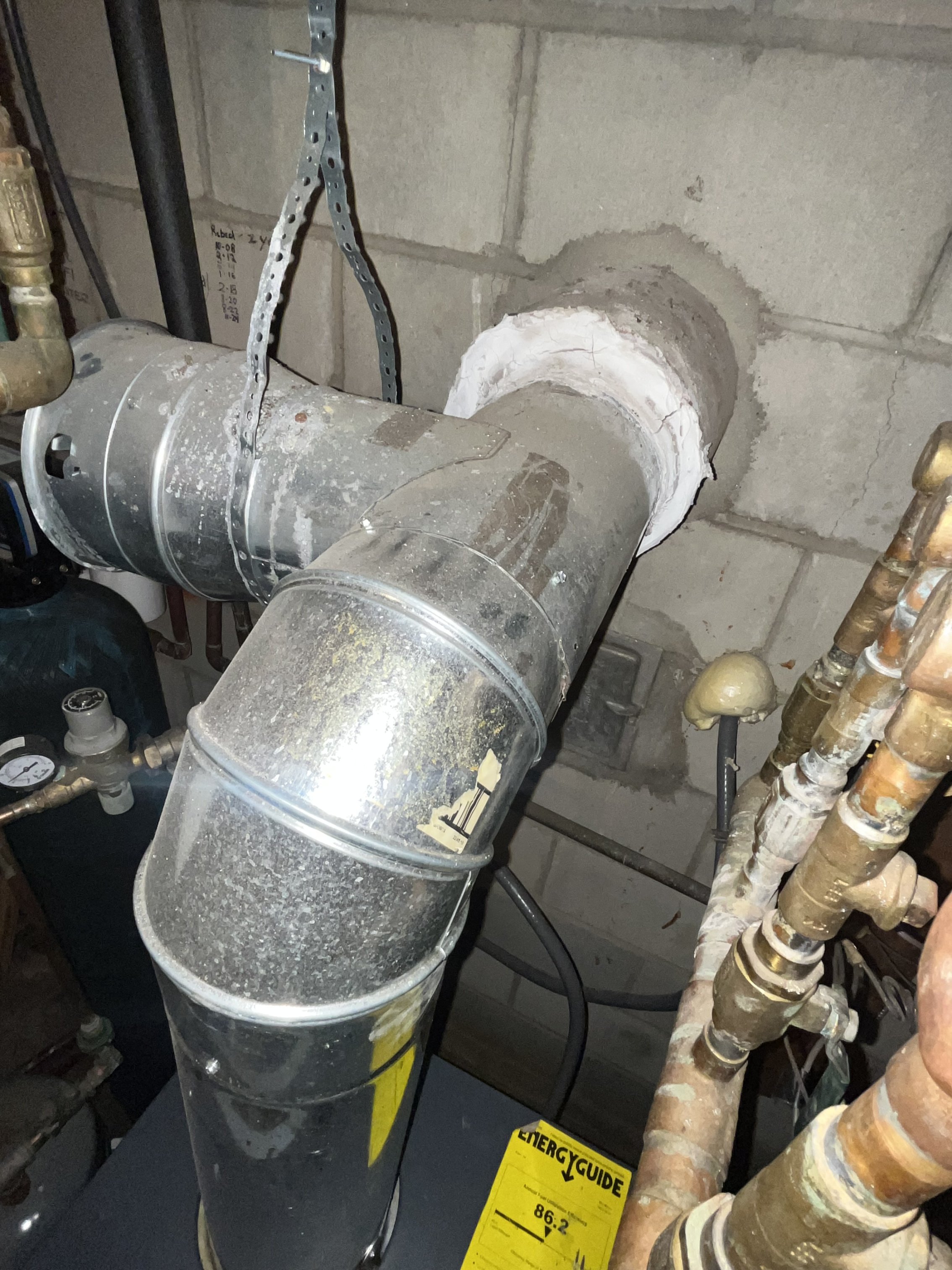 So I plan to clean my Weil-McLain WGO-3. I've done it once or twice before, and the only thing I dread is taking off and putting back the flue pipe. As you can see the riser is firmly wedged in between the top of the boiler and the elbow, with no play anywhere. Maybe just the right kind of twisting of the elbow will free things up, but I doubt it because that has never happened before, it was always the use of pure force and prayer with me worrying about breaking the elbow, which I think happened once, or cracking the cement.