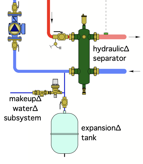 You have some flexibility with expansion tank placement when using a separator. Often it is right at the sep on either return.