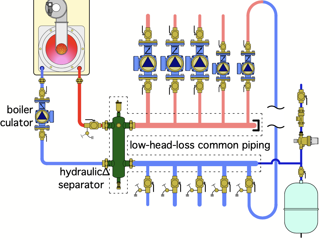 My hang up is I am not understanding if I would still require a primary circulator or would the zone circulators accomplish that task? Also, being that the circs are pumping into the manifold, how would I pump away from a pressure tank, unless I built a circular race track with a primary circulator installed downstream of the PONPC?