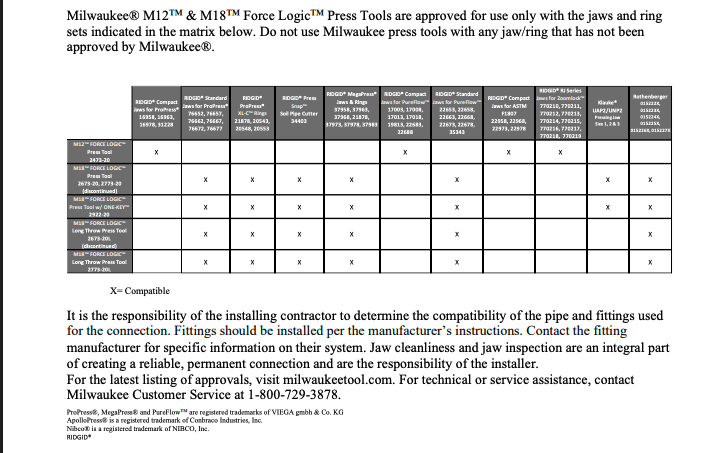 Since Viega will not Warrant any joints unless it has the "V Watermark" on it we use the approved tools with great results and no breakdowns !