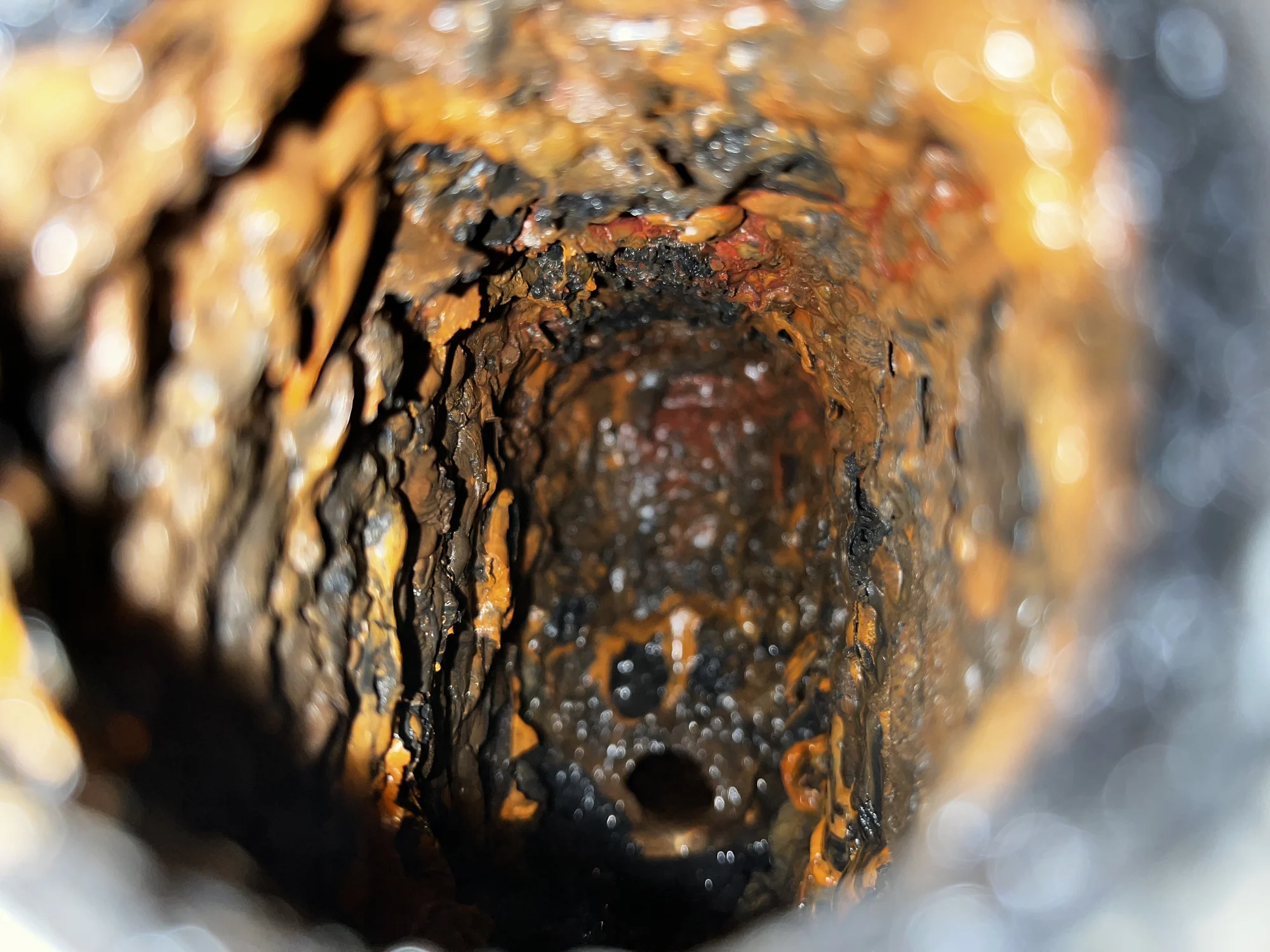 Once the float is removed, I open the manual fill water valve so there is a small trickle of water through the chamber to wash away the debris as I am cleaning it from the walls of the chamber. The trickle of water then drains through the Blow-down valve into a bucket. You could scrape and wire brush and then vacuum too, however it all starts out wet so I just flush it into a bucket.