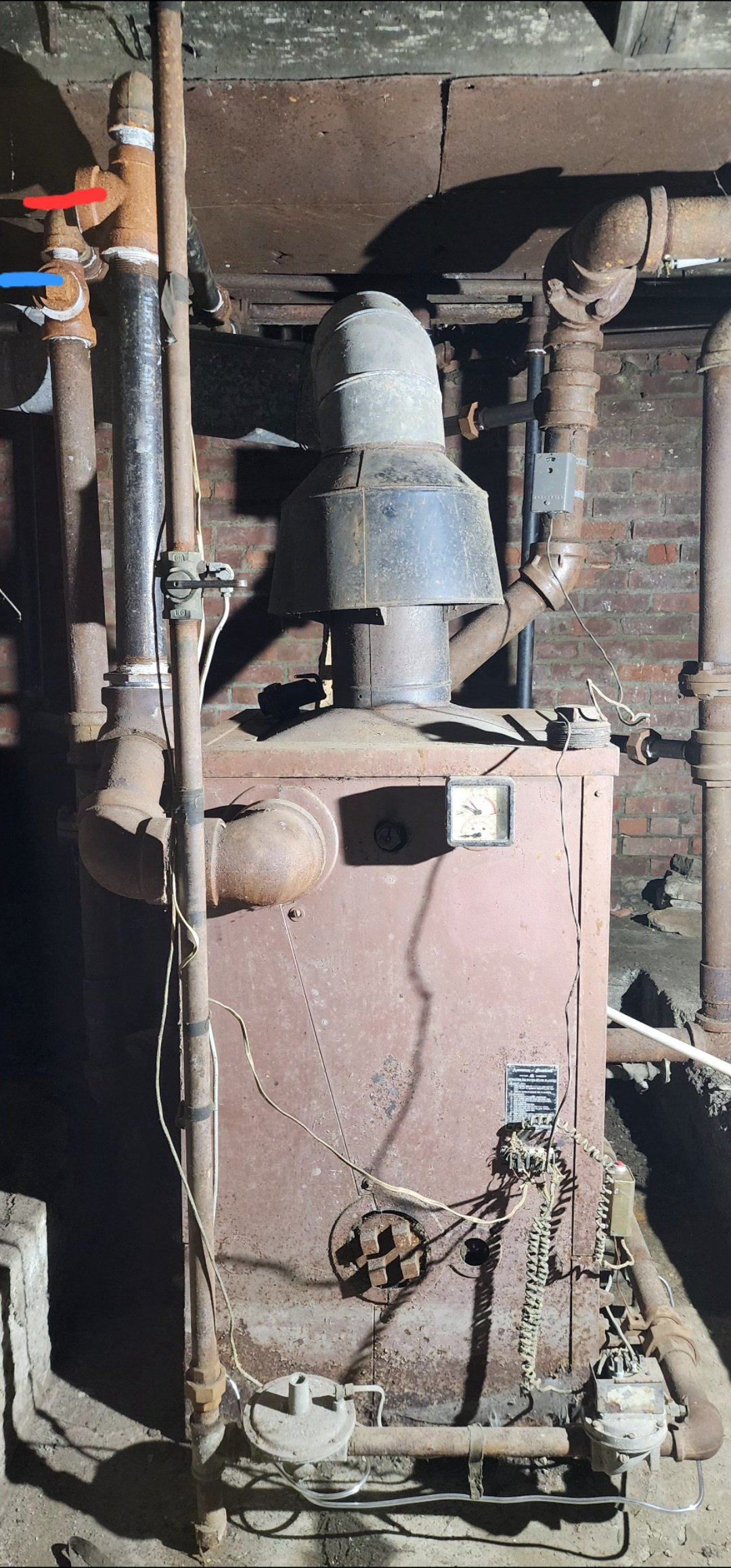 Here is the dinosaur. It will be replaced sooner than later but first i want to make sure that the radiators a were placed actually heat the whole house comfortably. This heating system is installed on a ny style row house with the boiler located nearest to the street with the brick wall being parallel to the street.