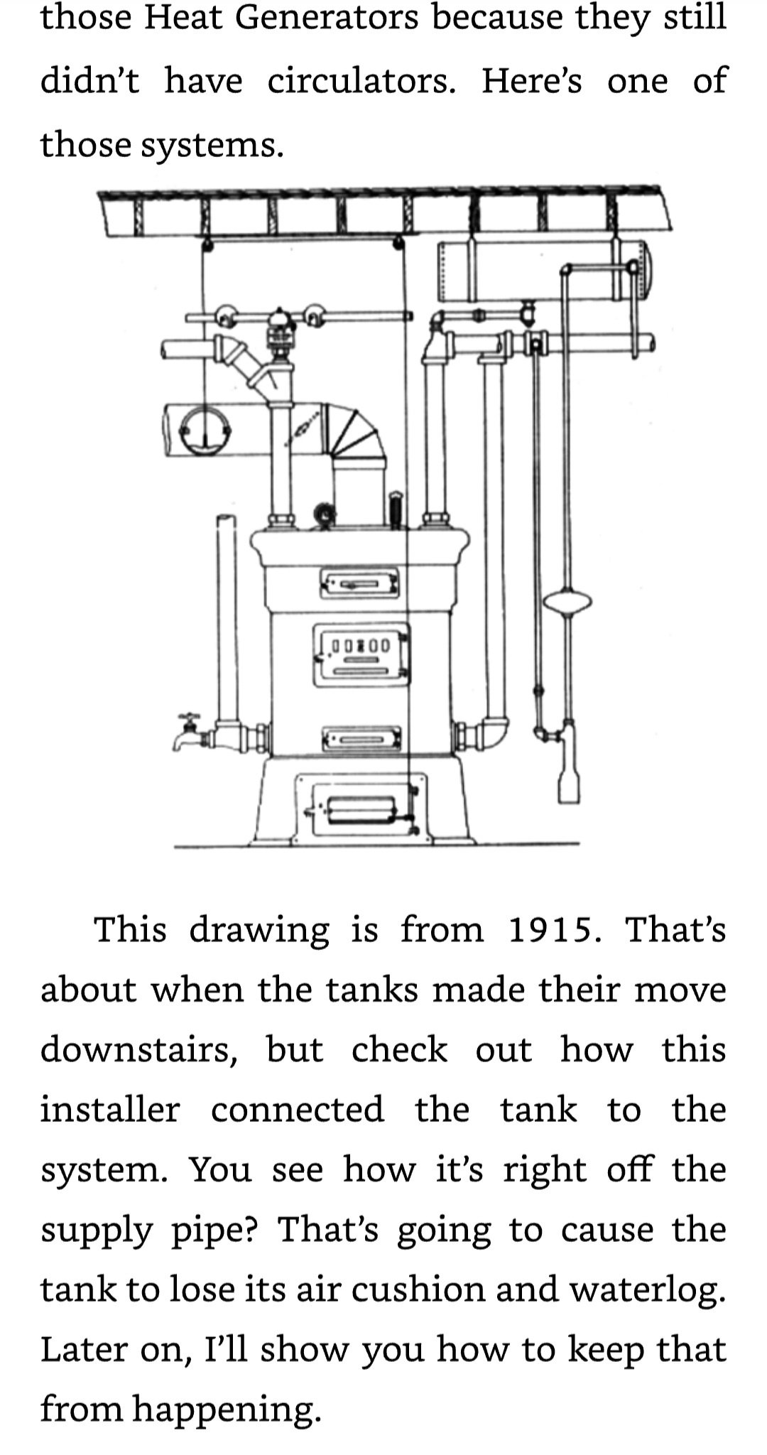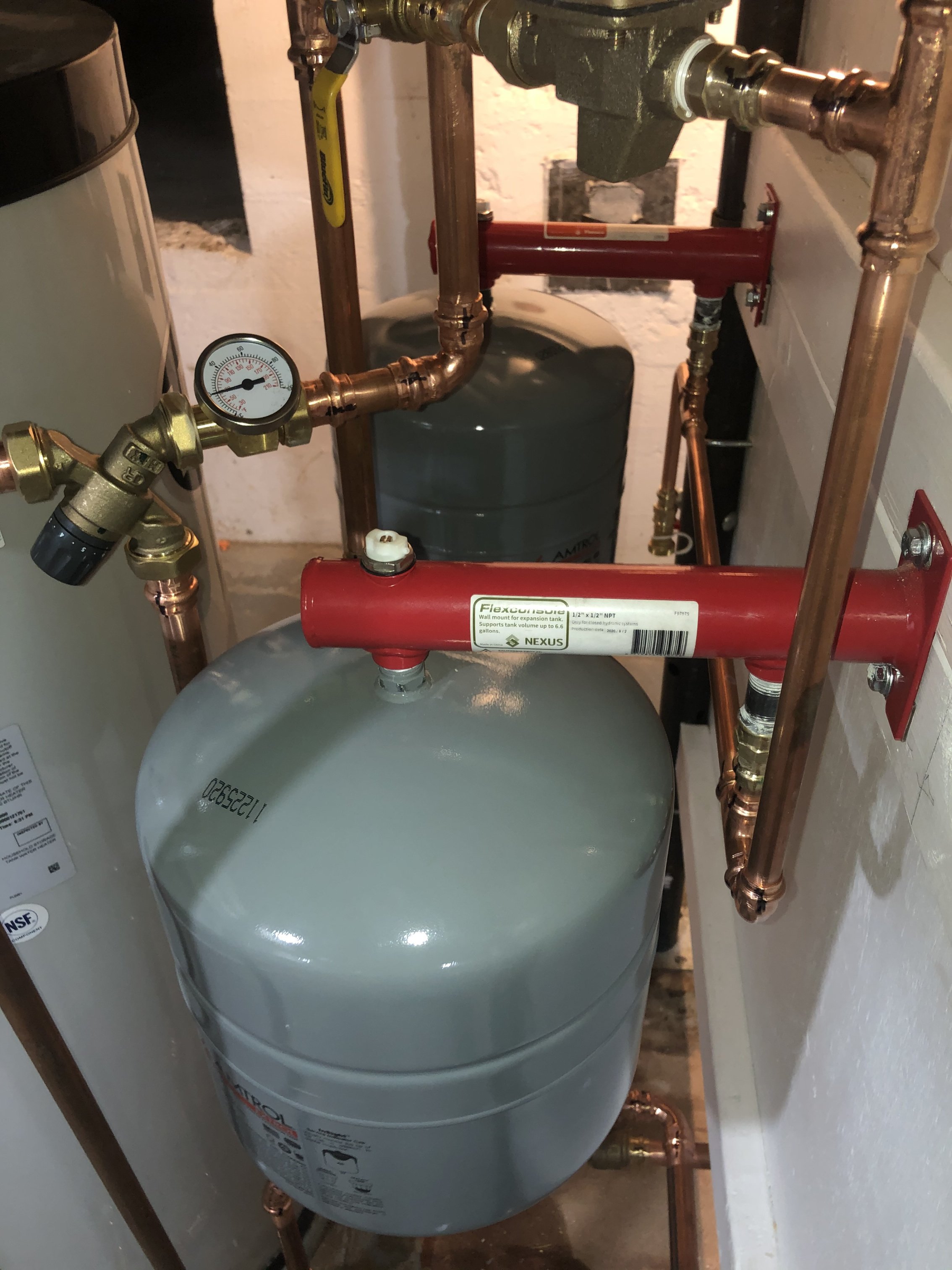 So, I'm going with the used 33 gallon standing diaphragm tank since it was avaliable. I actually had reservations on reusing the 30 gallon plain steel tank since i had no way of knowing if it was sized for only the first floor or all 3 floors. Per @hot_rod a diaphragm tank will can be 1/3 the size of a plain steel tank so I'm golden. My last question is whether the is any difference whether i attach the diaphragm tank to the supply (red) or return (blue) side of the boiler. Obviously, on a circulator application it would be on the supply right after the pump that pumps away from the boiler, but for all gravity systems, they usually hook the return to the attic tank. Since the return had slightly cooler water, I an currently planning on hooking up to the blue at the line drawn