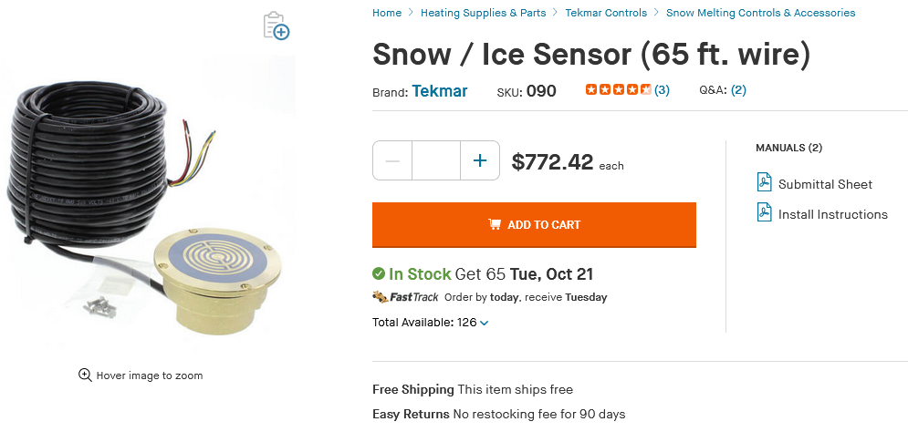 unless you put the sensor cup 091, in the slab along with a conduit, the snow and ice sensor may not be an option.