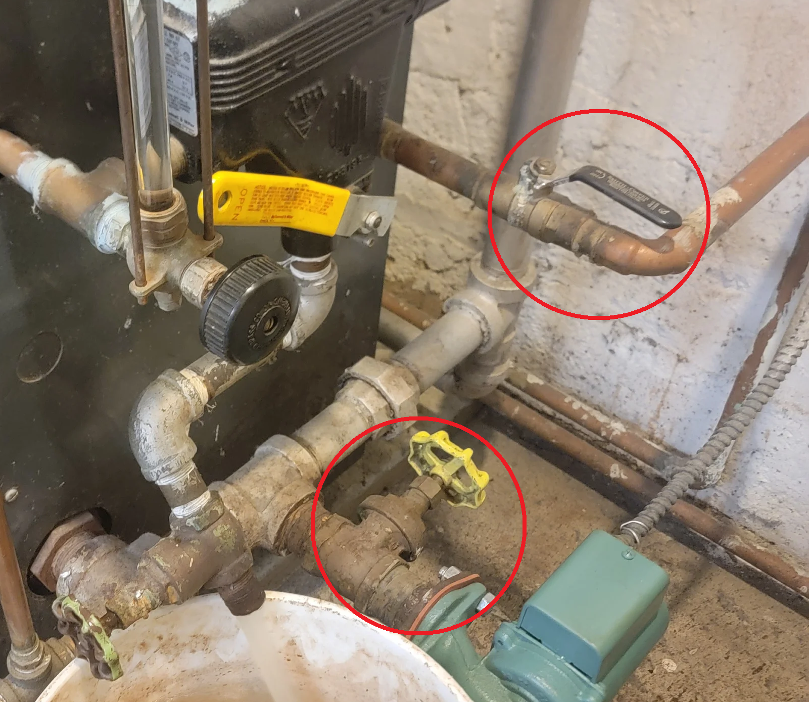 I will say, the copper piping beyond the red valve, closest to the boiler is HOT, just like the piping before the valve, even though the valve is "shut". However, the water I'm draining, is COOLish.