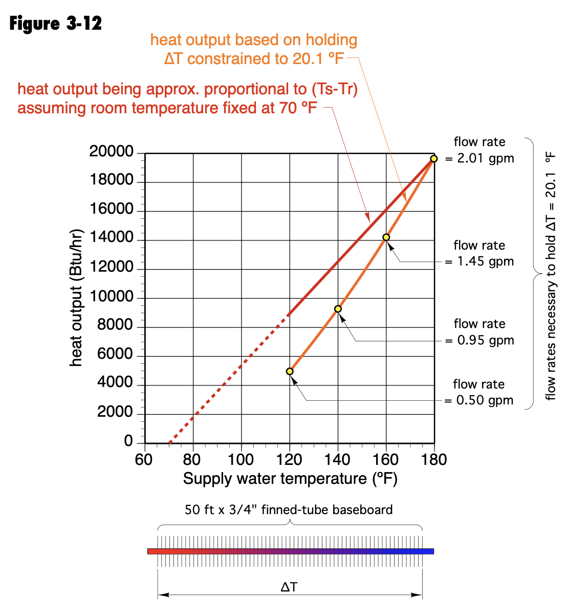 I wonder what that orange curve/line would look like if it were modeled based on a real-world constrained delta T example. Might line up much better with the red line. But I dunno man I'm not a mechanical engineer or HVAC person, I'm just a dude.