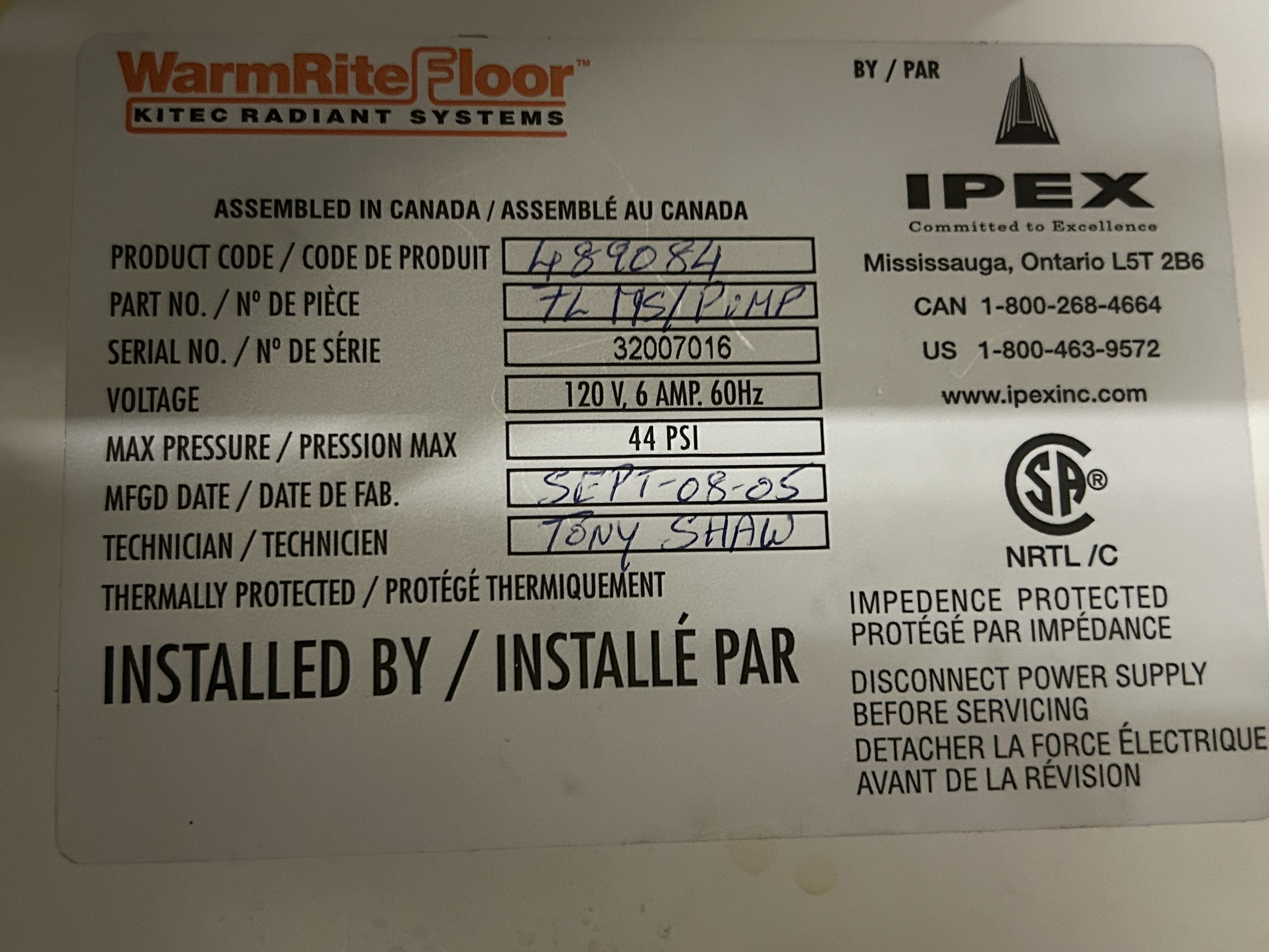 Maintaining Manifolds on IPEX/Warmrite/Kitec Radiant Floor System