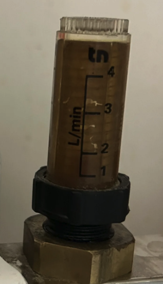 As you can see in the pictures below, the fluid in my system is contaminated by something. When I brought things back online, the fluid in the flow meter glass was not clear, but it was not this color either. I am on a well and our mountain water does have high levels of iron in it.