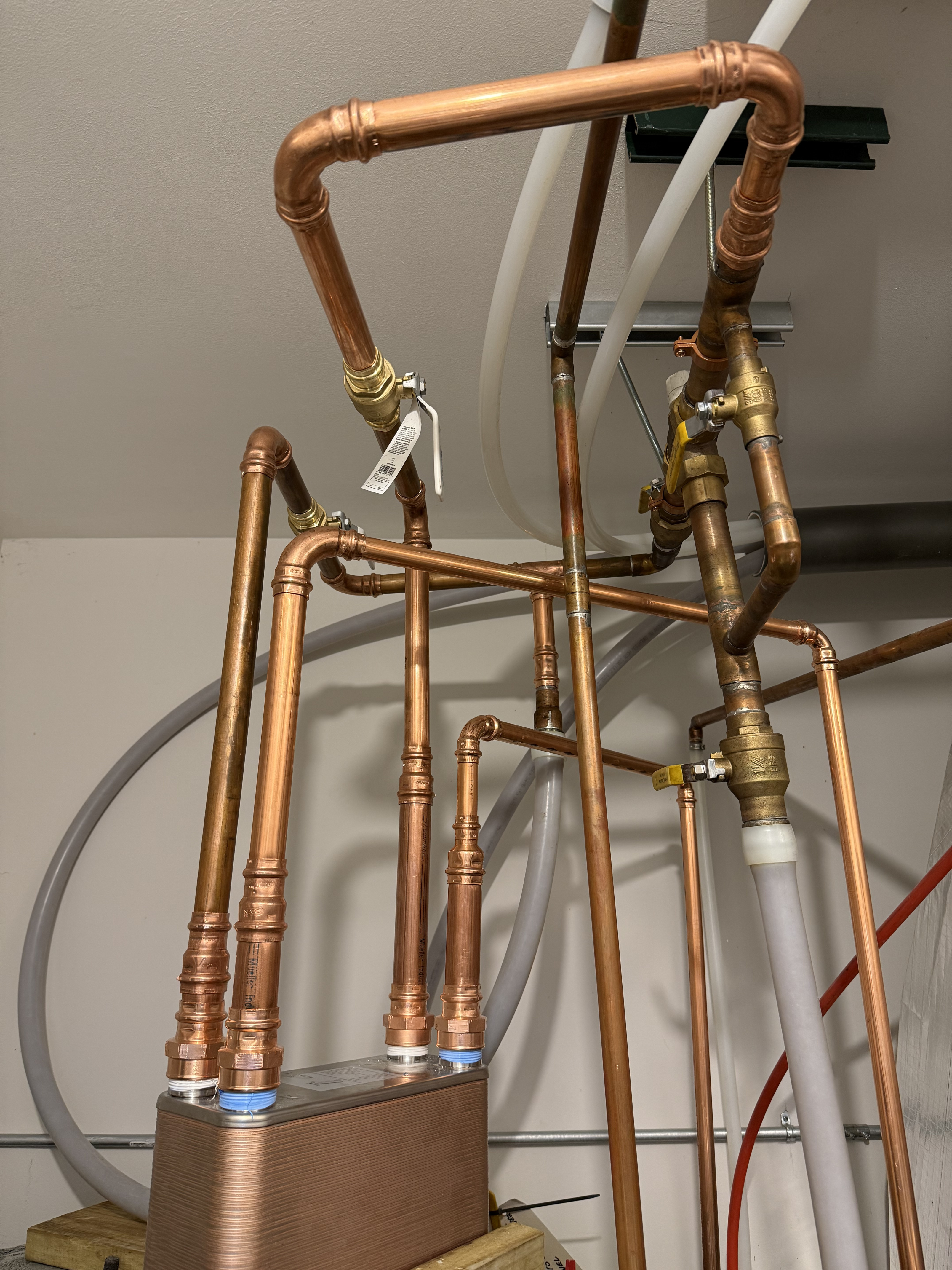 im looking at this now and for an extra couple hours of work - and couple hundred in fittings, im going to repipe that side of the heat exchanger. I think I’m going to chalk this one up as a mistake but have peace of mind that I’m at least getting 1” pipe for the house side, and the short 3/4” loop will just be used for the wood boiler loop.0 -
