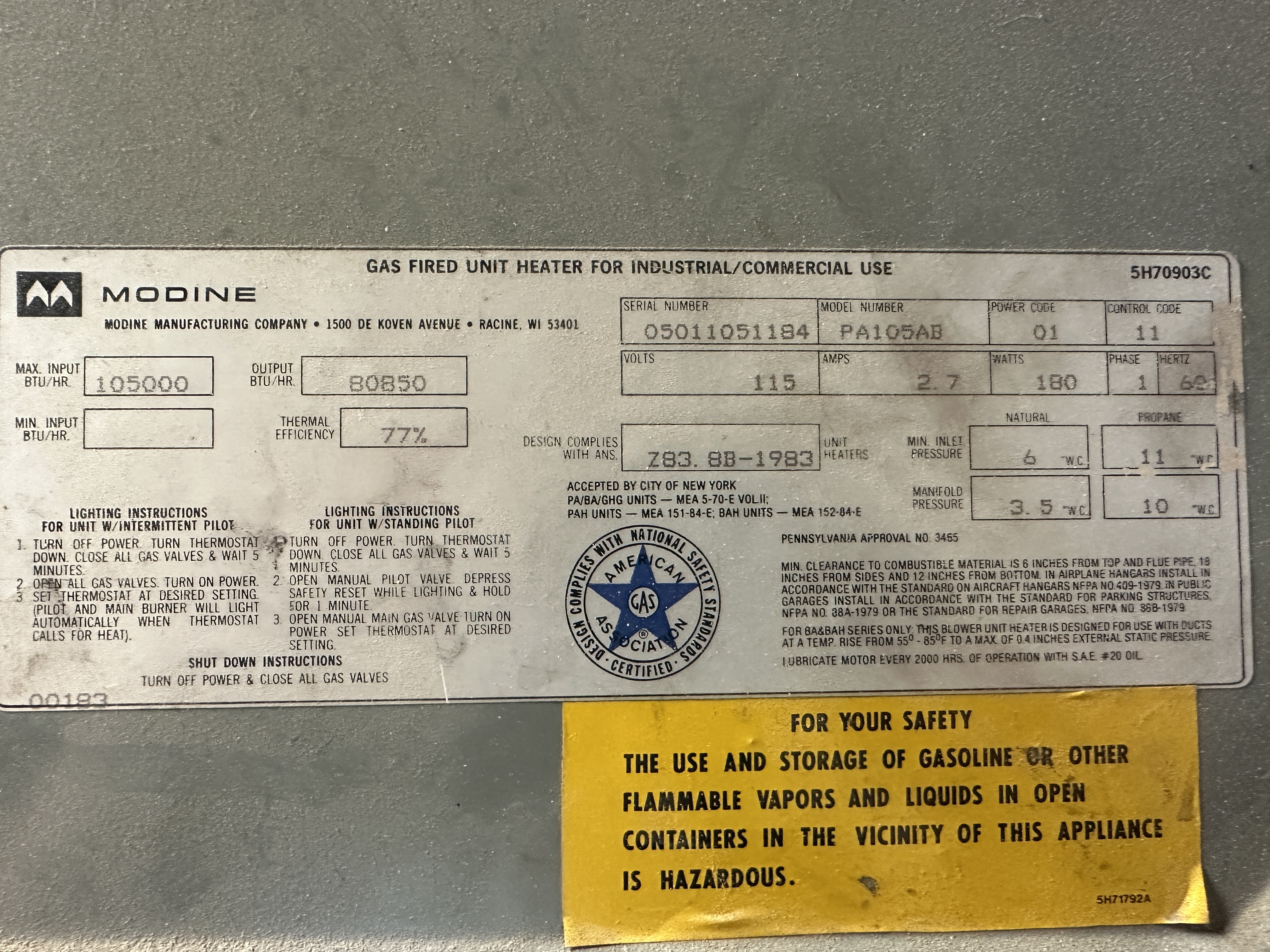 Hello There! Need help finding a replacement valve for my Modine Shop heater unit. It is a standing pilot system and a picture of the sticker on the side of the unit is attached. Hoping for a direct replacement that I can just swap out. Any help is appreciated. Please let me know if there is any other specifications I should list. If anyone can provide a link to the replacement product that would be great!