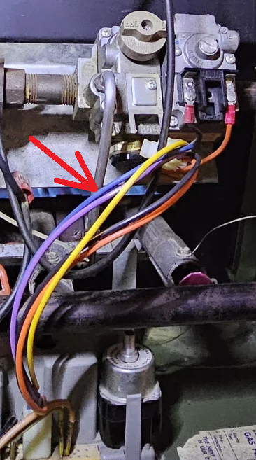 " i measured the voltage on the blue wire between the control board and gas valve.