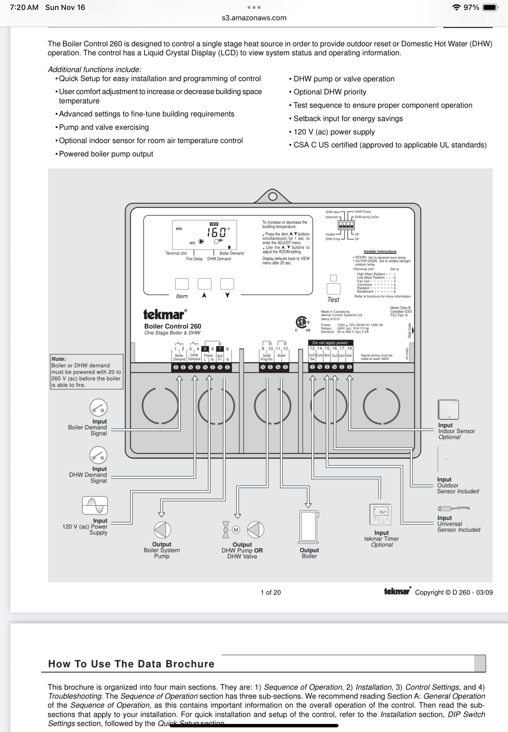 Sorry about that, I have a 260 here at my shop that I was looking at. It has the DHW function