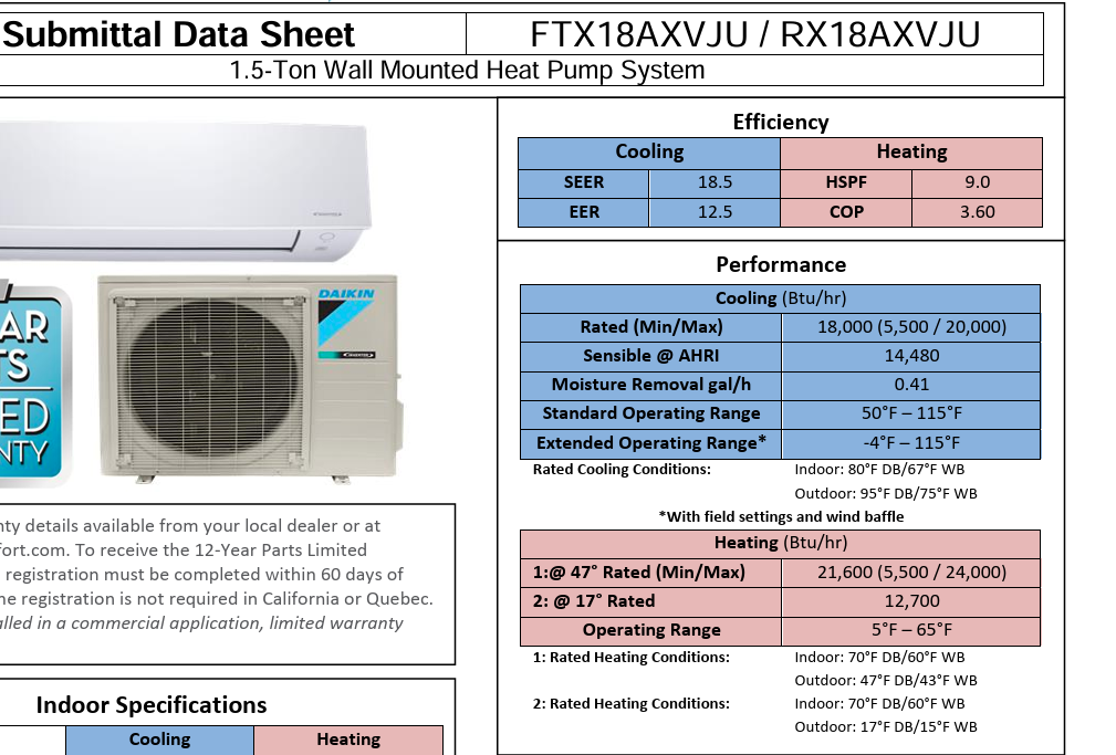 The unit I'm questioning is a Daikin RXC18AXVJU