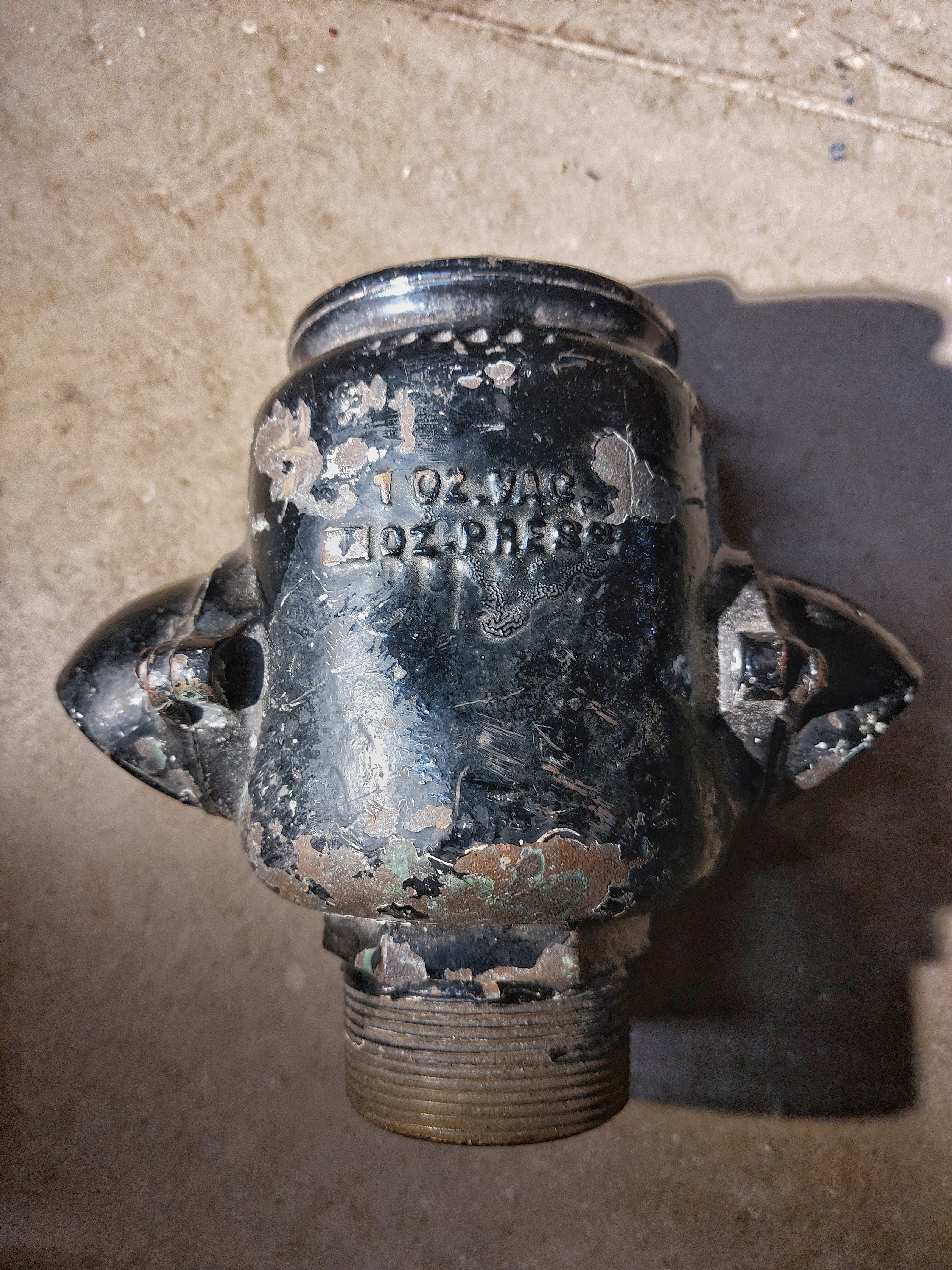 Found this near an old heat exchanger at the highest point in the building. 2p originally coal fired. Clearly a vent and I'm aware of coal burners with vac vents to produce steam below 212F. Is that what this is? I don't see how it sealed against steam though. Weighs a ton.