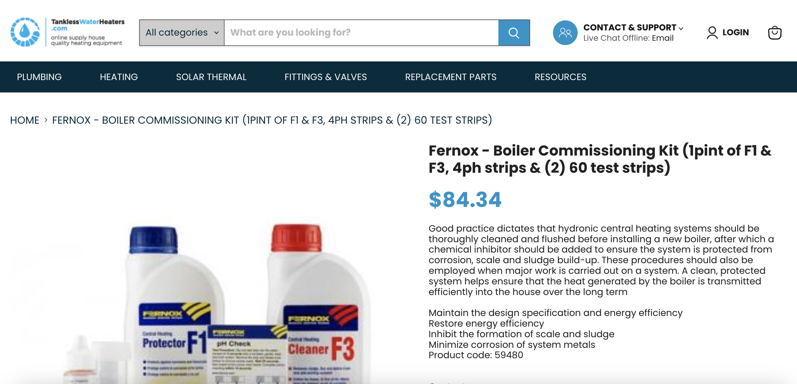 The ProTech 300 I got will last a long time and I'll have some to use in the outdoor boiler too. As far as I can tell it's fine to use, it's marketed for wood boilers, but it says it's good for steel, copper, stainless, brass, and can be mixed in with antifreeze. A gallon is good for 300 gallons, so it'll last a while. My system is maybe 15 gallons Id guess so it'll need like 6 oz.
