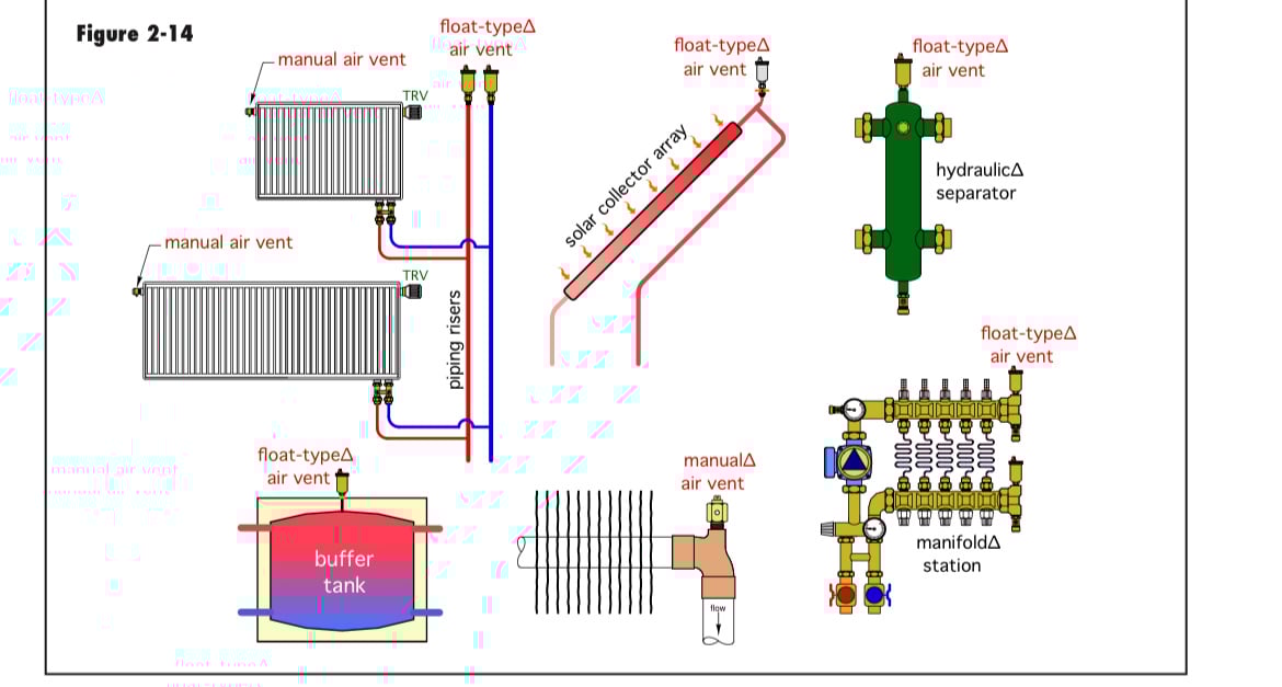 The only air vent I see in the system are the 2 bleeder valves on each manifold, which have some mineralization but per previous post are currently expelling water when I purge the system - so perhaps aren't doing their job? I think they are too low in the overall system to be of much use.