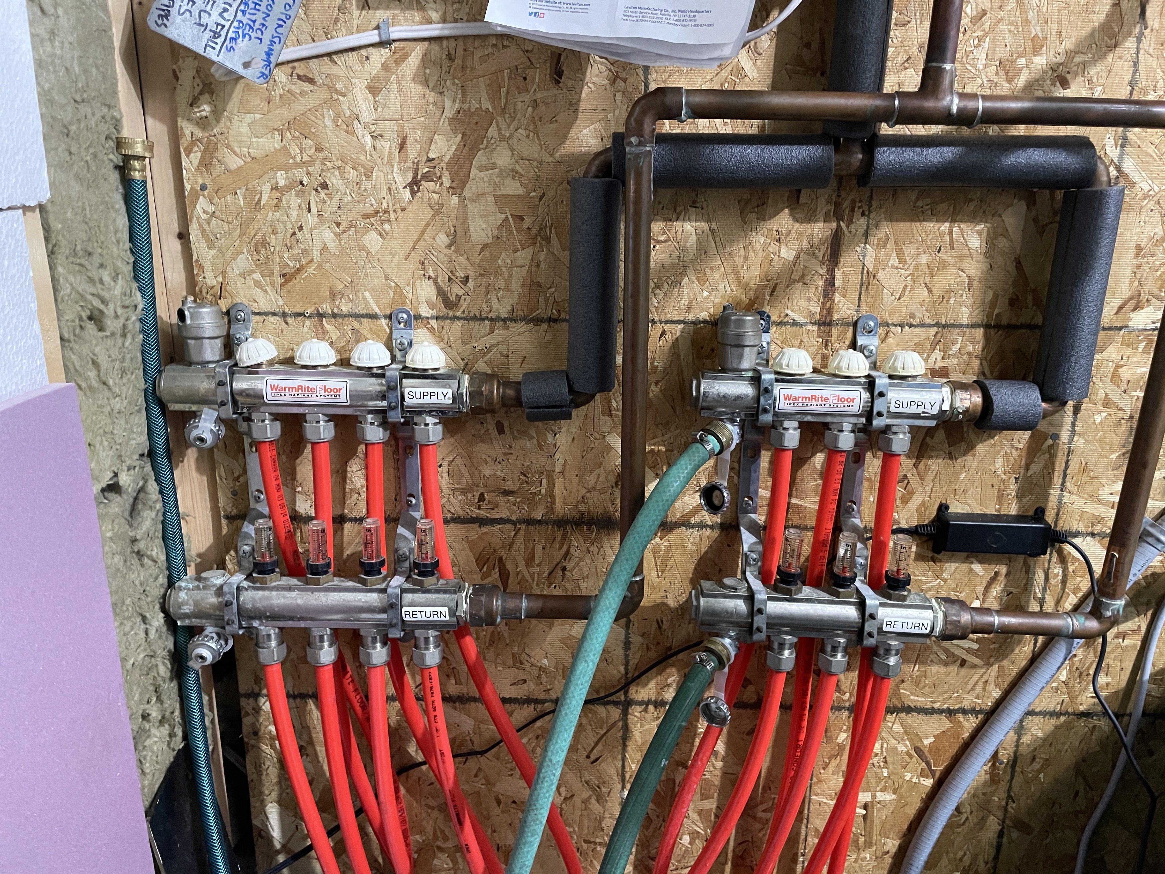 My next step is to follow the process (again) from start to finish and try to purge/recharge each of the 7 loops. I did find last time that if I closed one loop before opening another I got a vacuum and flow stopped, and when I tried to open the next valve nothing happened, and I had to start over, turning everything off and opening/closing valves and bleeding the pump.