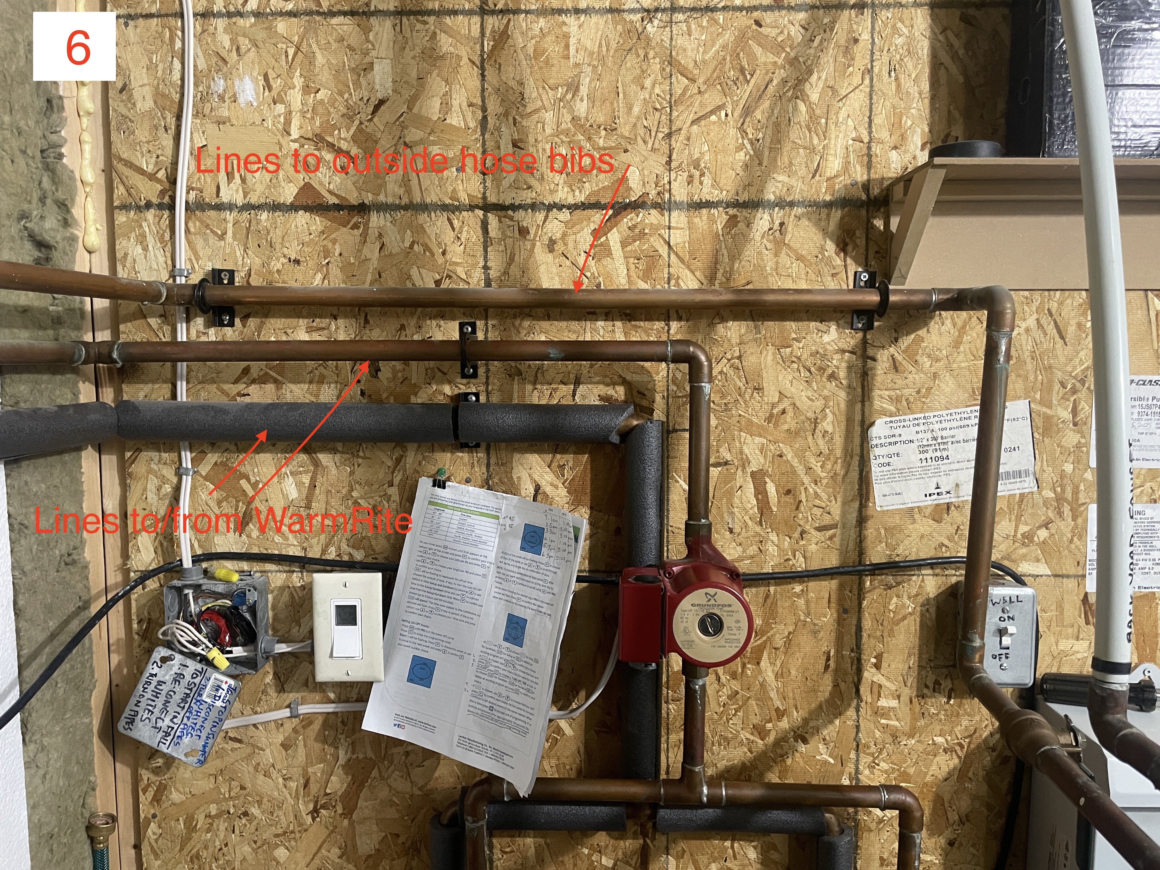 5 - S/O for lines to WarmRite (instructions from homeowner to close in spring and turn off power to pump/open in fall