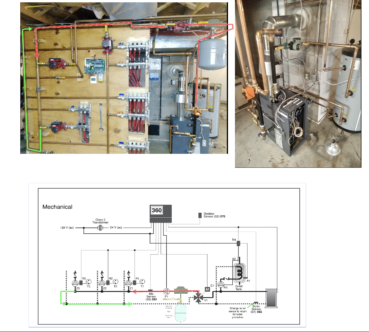Can you step back and take some photos of the entire system and near boiler piping? Trying to diagnose with those close up photos is next to impossible.