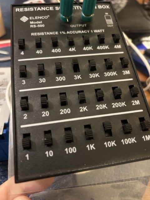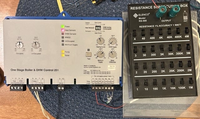 - Variable room temp simulation using a resistor substitution box.
