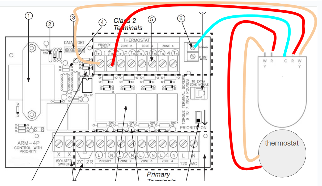 As I replaced my old 2-wire thermostat with a Nest thermostat, I installed a Nest Power Connector to my Argo ARM 6P controller. See photo. The thermostat gives me a N260 error, idication the C wire is abscent and cannot connect to wifi. I this wire configuration correct?