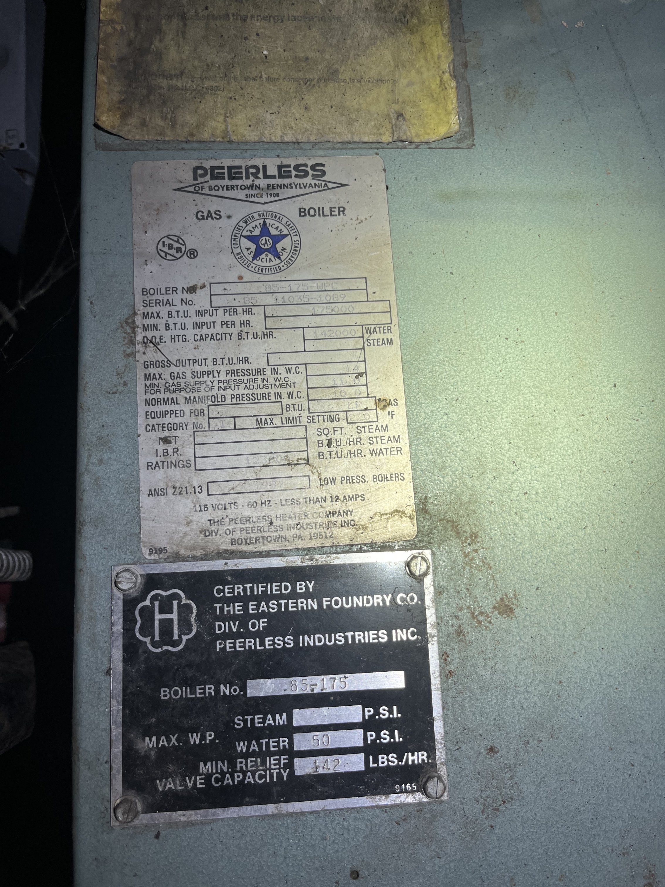Thank you both! Is there a way to find the date of the peerless boiler? Serial number? I was able to find a tag on the stoker. It is an Oil-O-Matic - Model G.