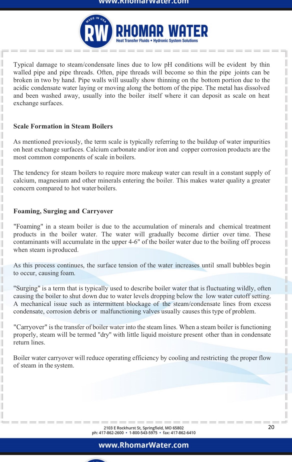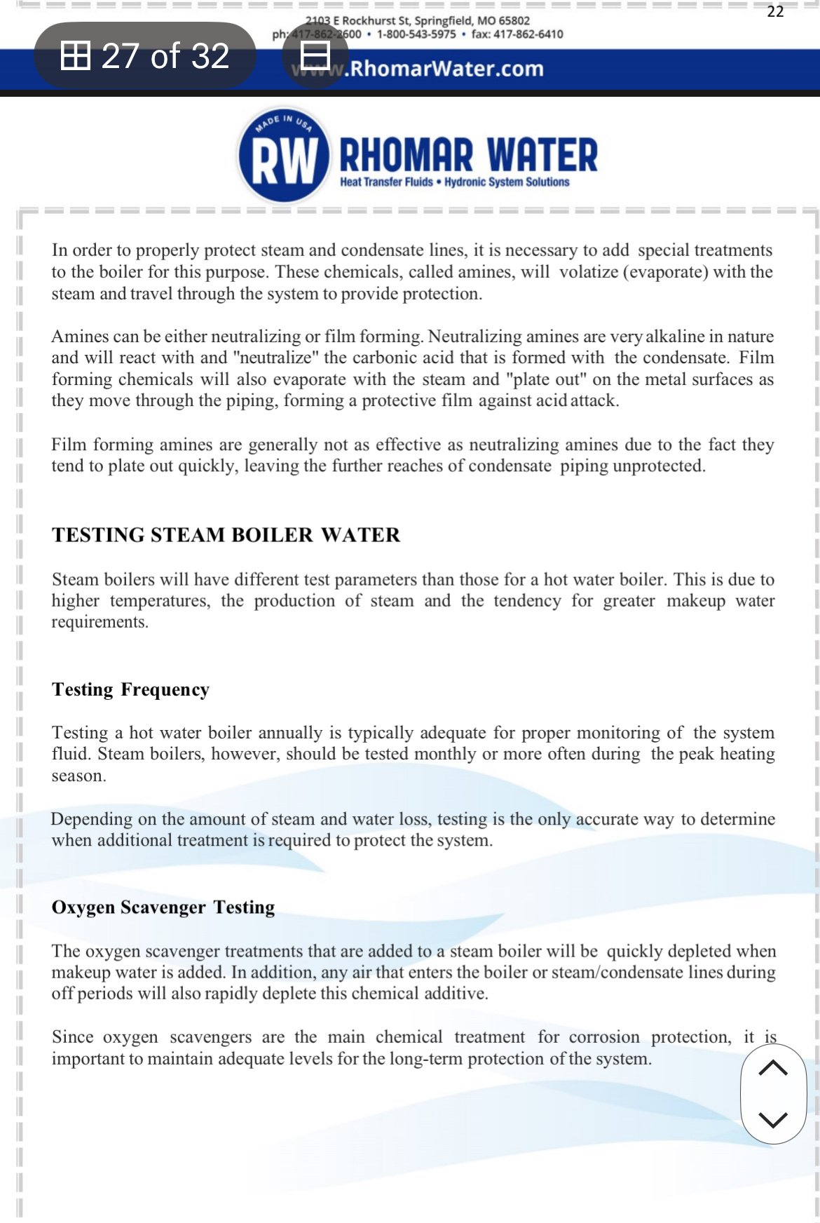 Ray, thanks for your expertise. I'm a home owner with a Weil McClain Gold boiler about 6 years old. Small house with only 6 radiators. Should I be adding something to the water to clean and balance the water? I tried using an F.W. Webb solution they recommended. I followed the instructions and pour the solution in to the boiler. Ran the boiler for the night but got concerned because of the banging. Very loud through this small system. Next day I emptied the water out completely and refilled with fresh, clean water. No banging. I tried testing the PH but I was doing it wrong now that I've seen your video. So if I take a sample the proper way and need to balance the PH, what solution do you suggest? Thanks again!