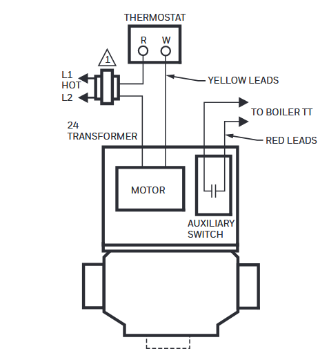 When the zone valve gets to the end of its travel (valve completely open) the 'End Switch or Auxiliary switch' closes activating the boiler.
