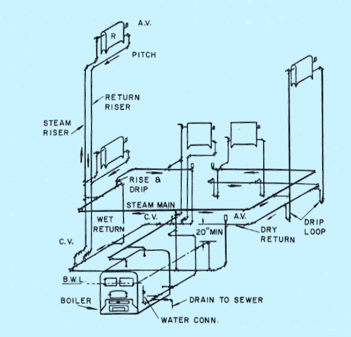 Tough to take a picture of all the returns but this is a picture that shows a section of the wet return with radiator drops.