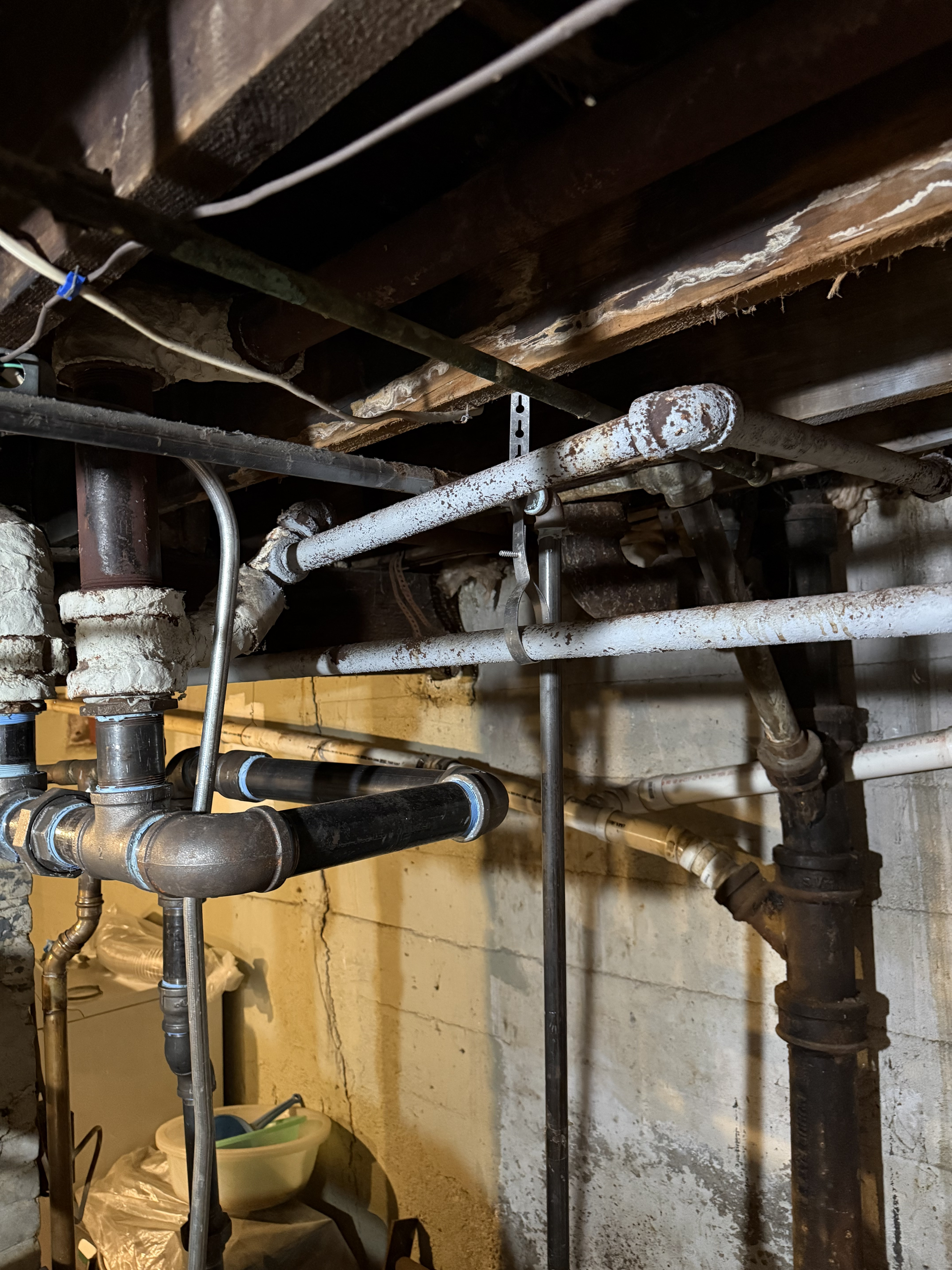 The reducers were already there; they look as old as the rest of the piping. I’m also going to check the pitch on the radiators.