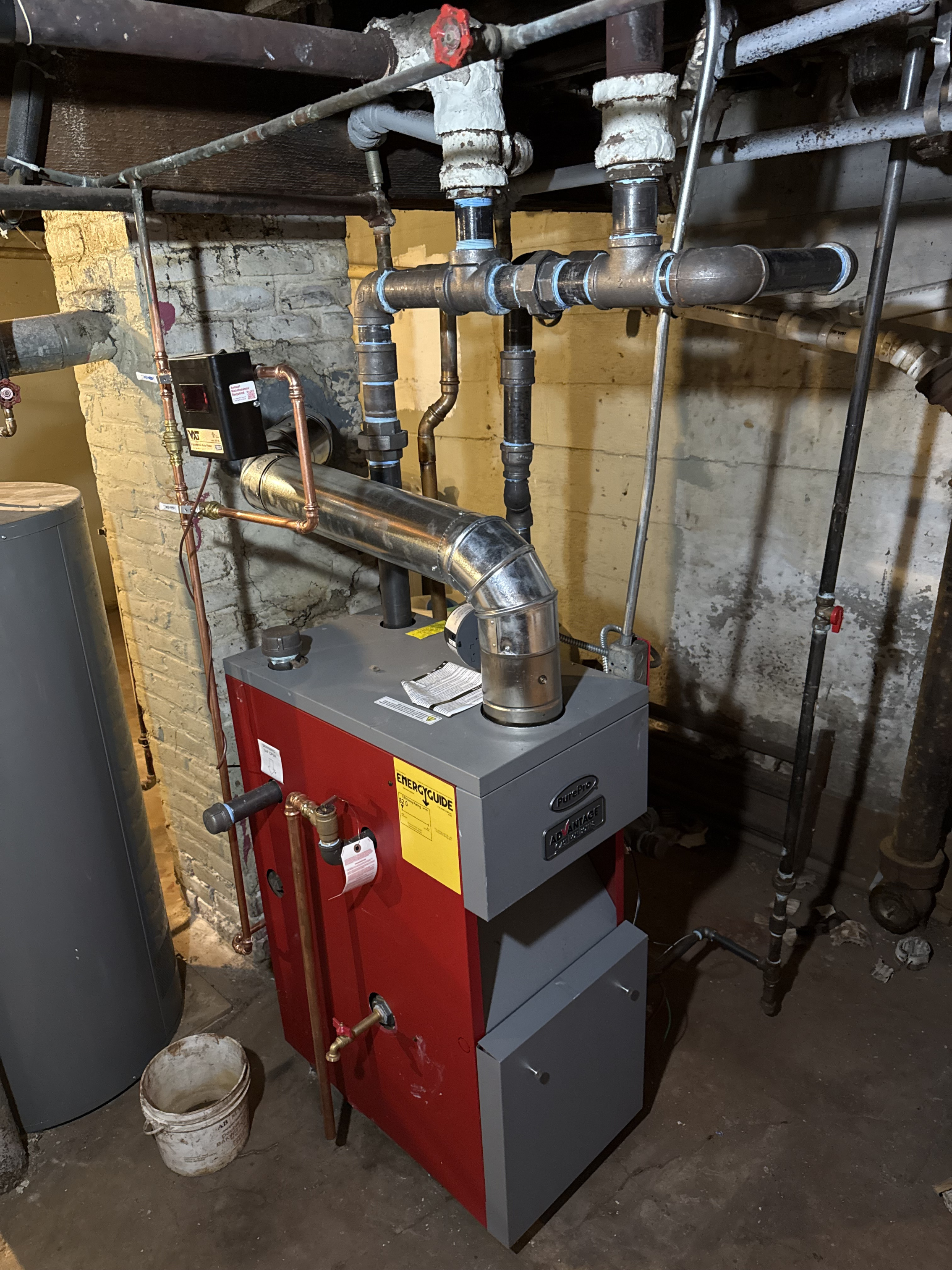 I’m not sure if the installer ever skimmed the boiler, so I’ll take care of that, because the water in the sight glass is bouncing a lot—sometimes the glass even goes completely empty.
