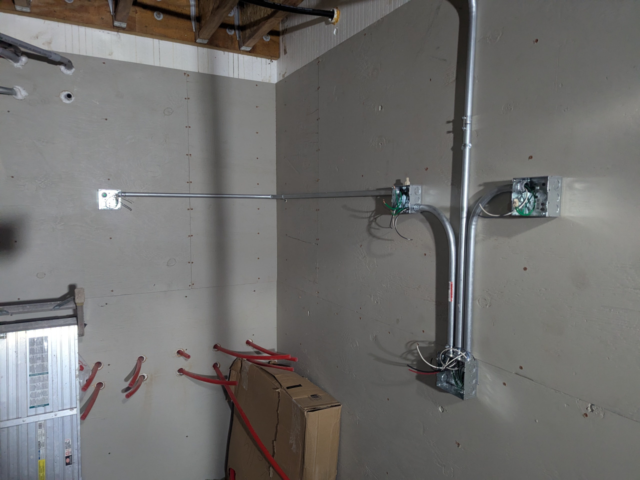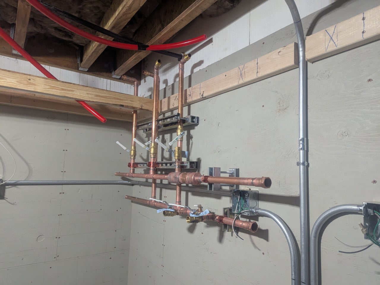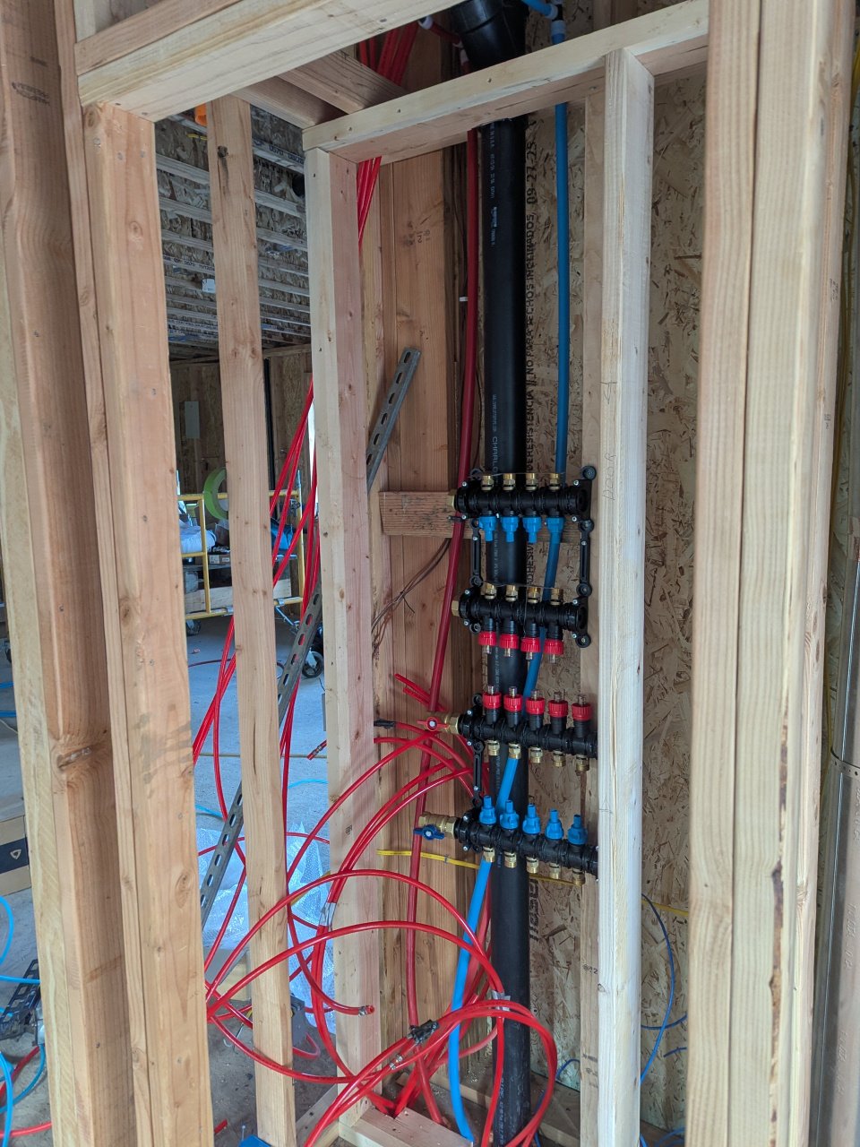 things are moving along. I started framing in the chase and manifolds at the east end. We will land those 9 runs early next week and the other 11 later.