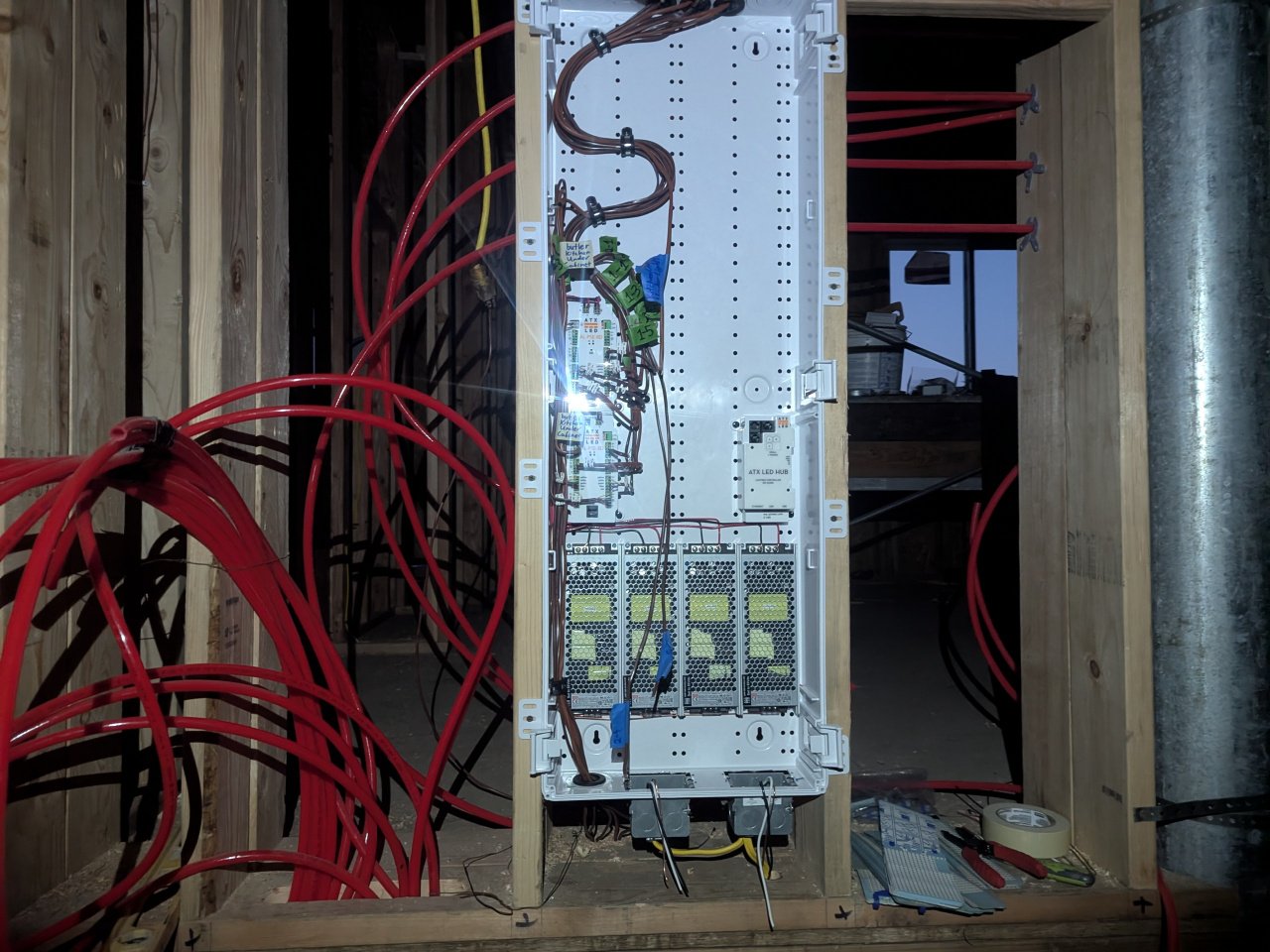 All the lighting, ceiling fans and bathroom fans are 51VDC low volt out of this cabinet.