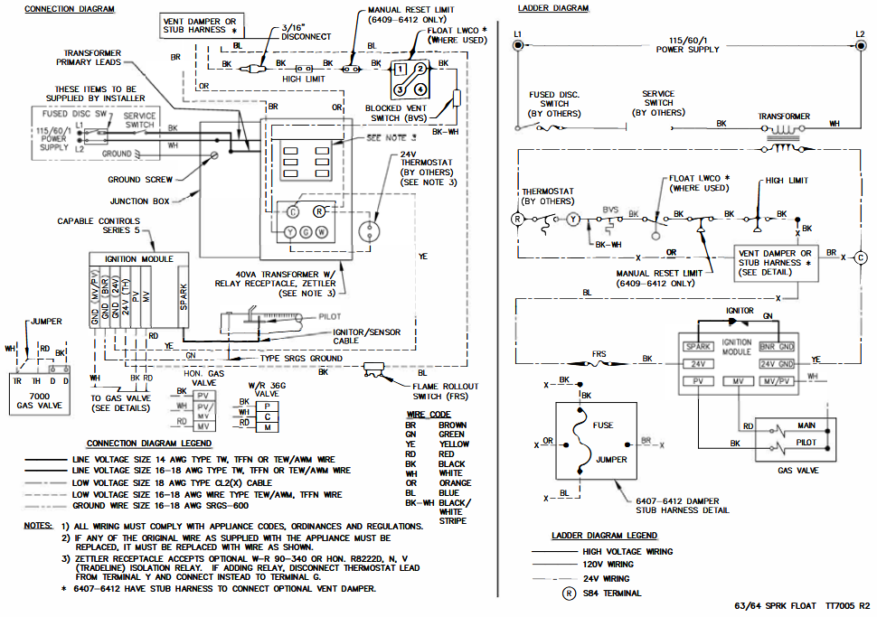 • yellow at damper. Starts at "R" red on transformer through limit and operating controls to damper #5