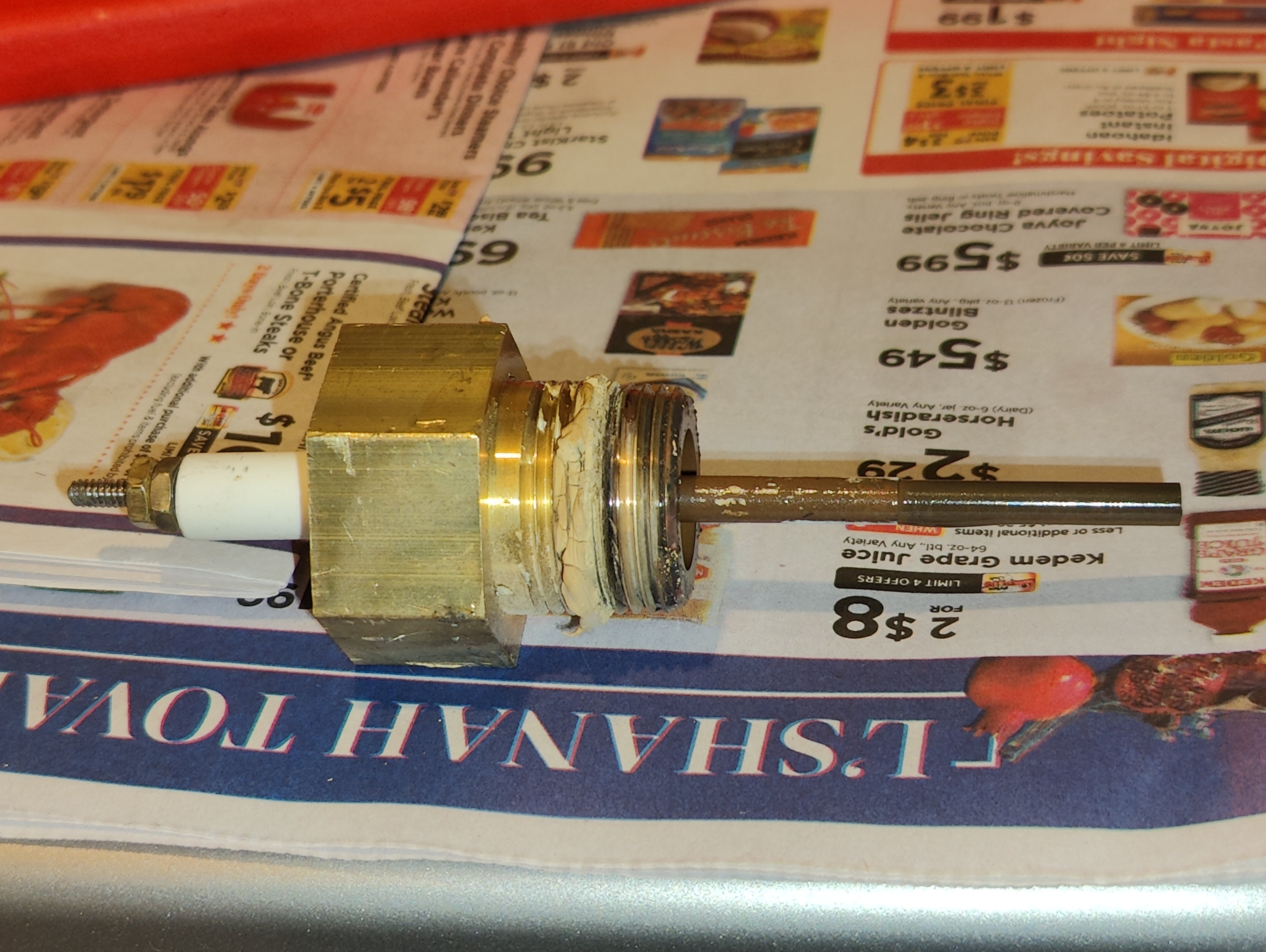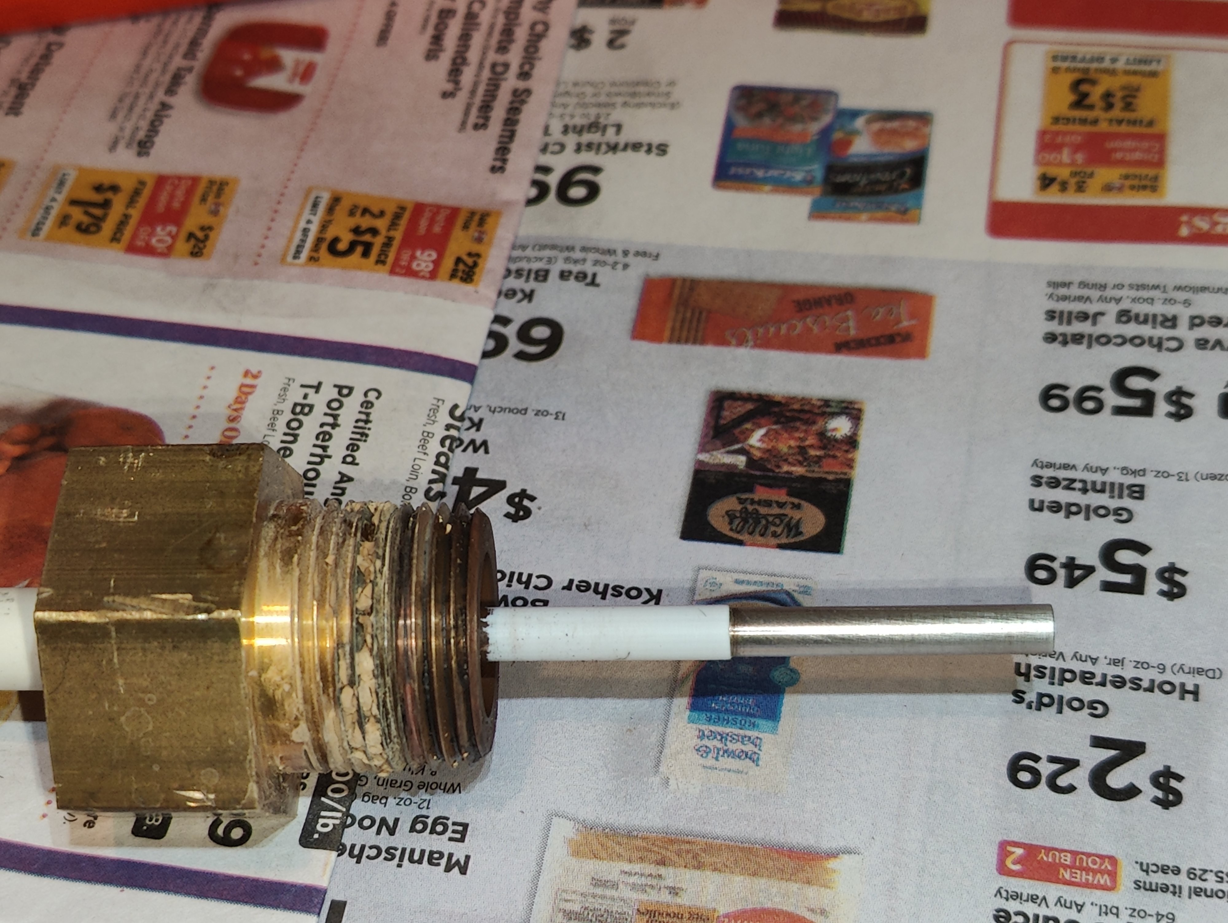 Btw, I removed the lwco probe. After some scrubbing with scotch Brite, the probe shows the color of cooper. I'll take wire brush next time to clean the threads, also bring the pipe dope and Teflon for reinstall. The inside of the tapping shows lots of rust and corrosion, will take pictures of that too.